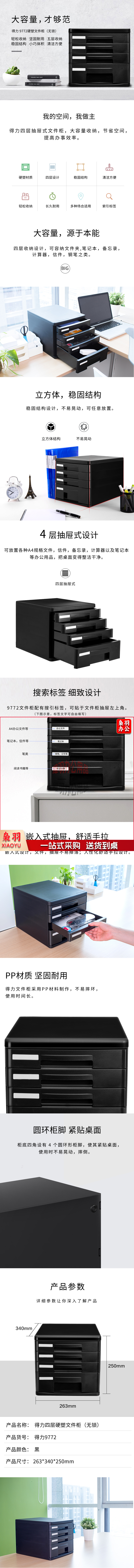 得力9772四层硬塑文件盒(黑)(只)