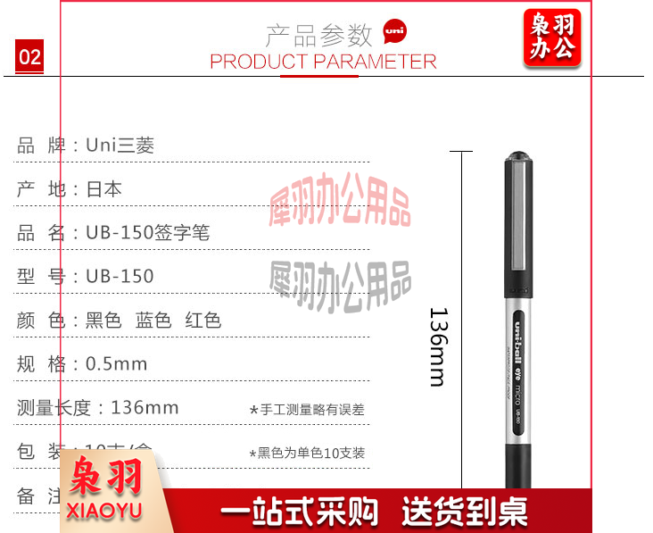三菱(Uni)UB-150 黑色 直液式走珠笔签字笔 0.5mm 10支装