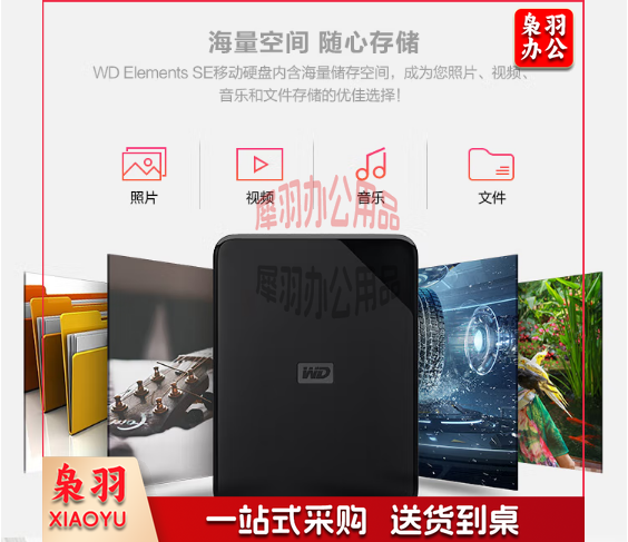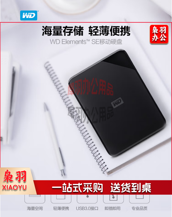 西部数据(WD)WDBEPK0010BBK 移动硬盘 1TB USB3.0 Elements SE 新元素系列2.5英寸 高速传输 轻薄便携