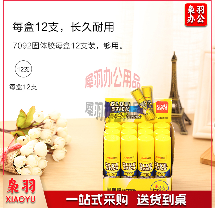 得力7092强力PVP固体胶棒白色20g(12支一盒)