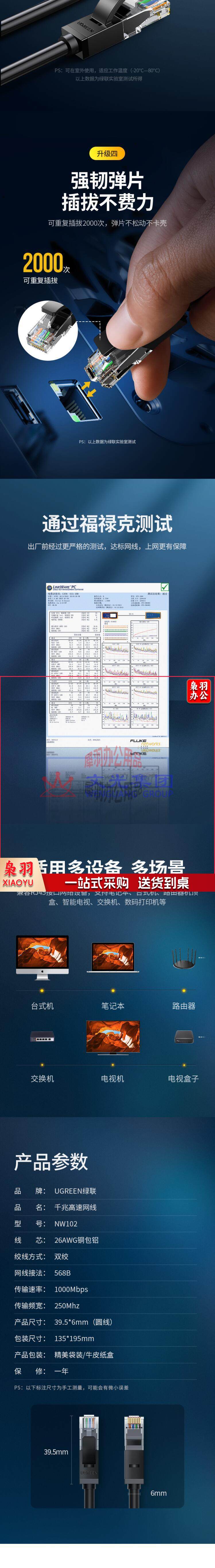 绿联 10米线长 20164六类网线 千兆高速宽带线 CAT6类网络跳线