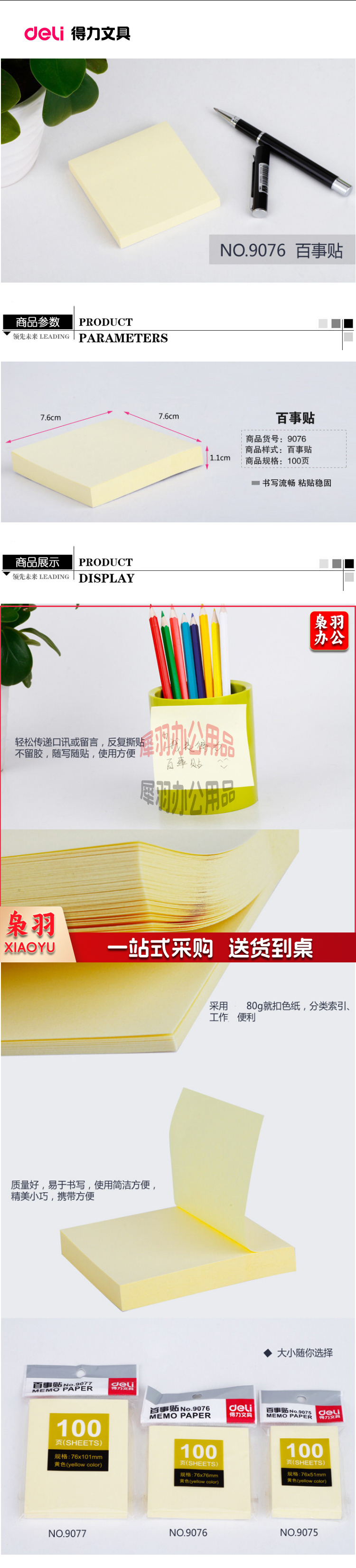 得力 9076 百事便利贴 100张/包(单位:包)N次贴 便利贴 记事贴