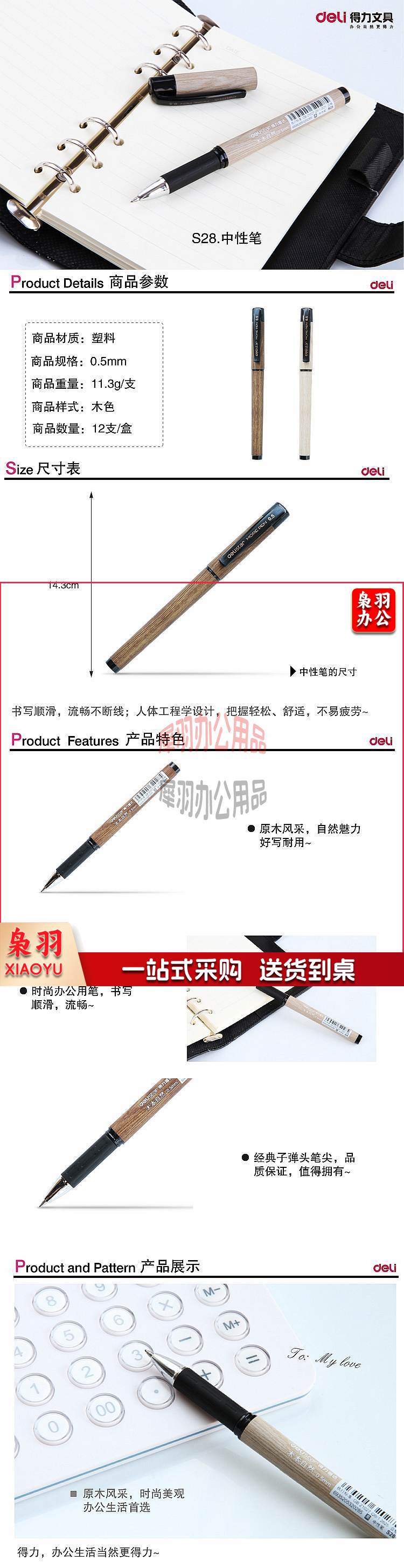 得力 S28 签字笔中性笔水笔 0.5mm 12支/盒 (单位:支) 黑色