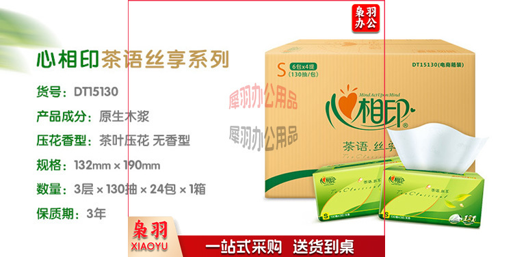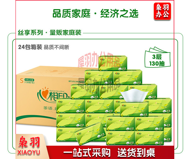 心相印抽纸 茶语丝享系列3层130抽面巾纸*24包纸巾 DT15130