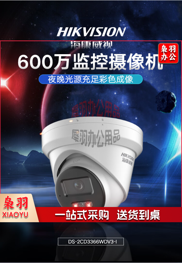 海康威视 DS-2CD3366WDV3-I 半球型摄像机监控器摄像头poe供电600万高清星光夜视3366WDV3-I 2.8MM
