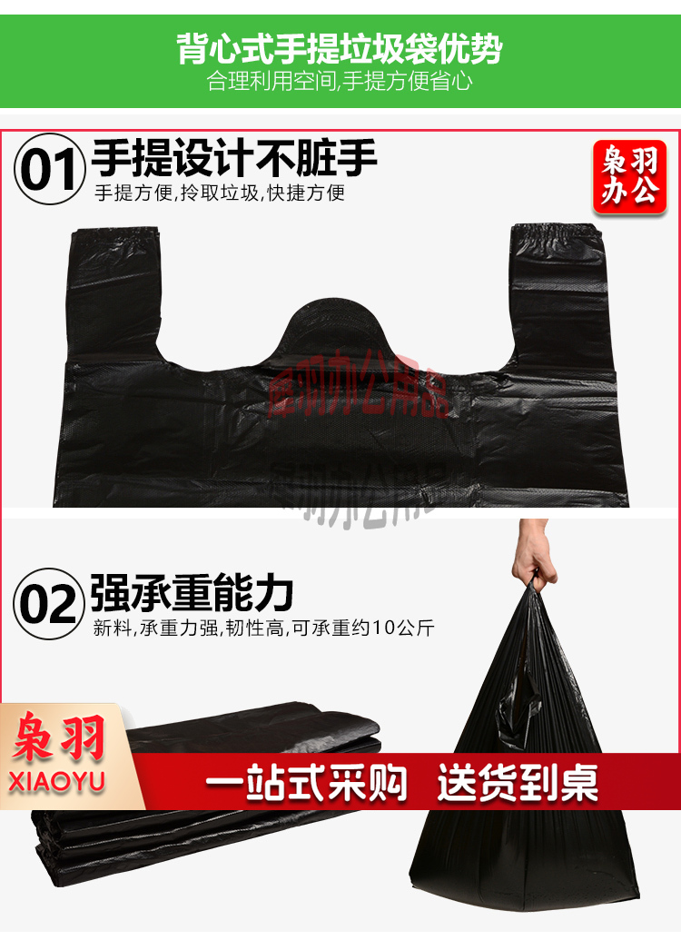 舒蔻垃圾袋Supercloud 家用垃圾袋黑色手提式垃圾袋大号背心式垃圾袋加厚塑料垃圾袋 40*62加厚垃圾袋3.5丝提手垃圾袋(35个)