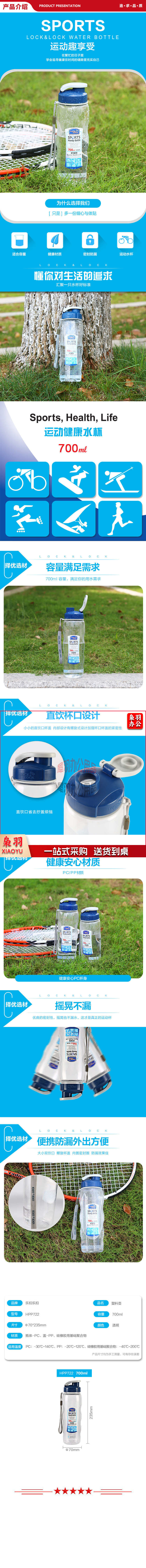 乐扣乐扣 locknlock HPP722 便携式提绳防漏塑料运动水杯 700ml绿盖