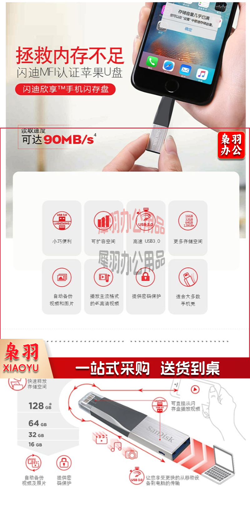 闪迪(SanDisk) 128G 欣享苹果手机U盘 MFI认证 iPhone U盘 SDIX40N-128G-ZN6ND
