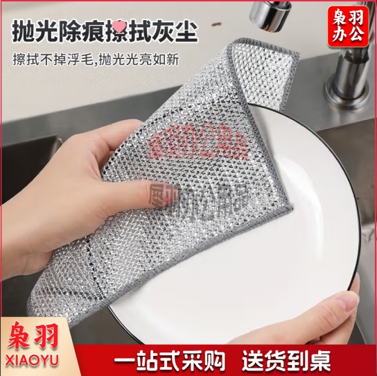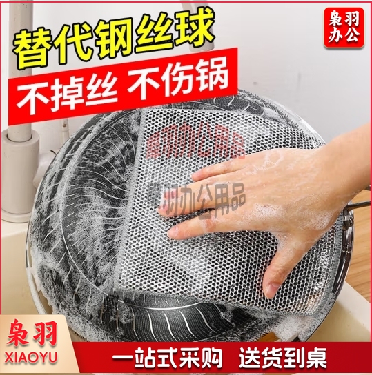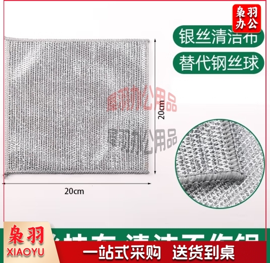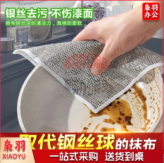 钢丝洗碗布不沾油钢丝球抹布厨房专用金属丝清洁布双面银丝仿刚丝 银丝抹布20*20cm 加厚3层