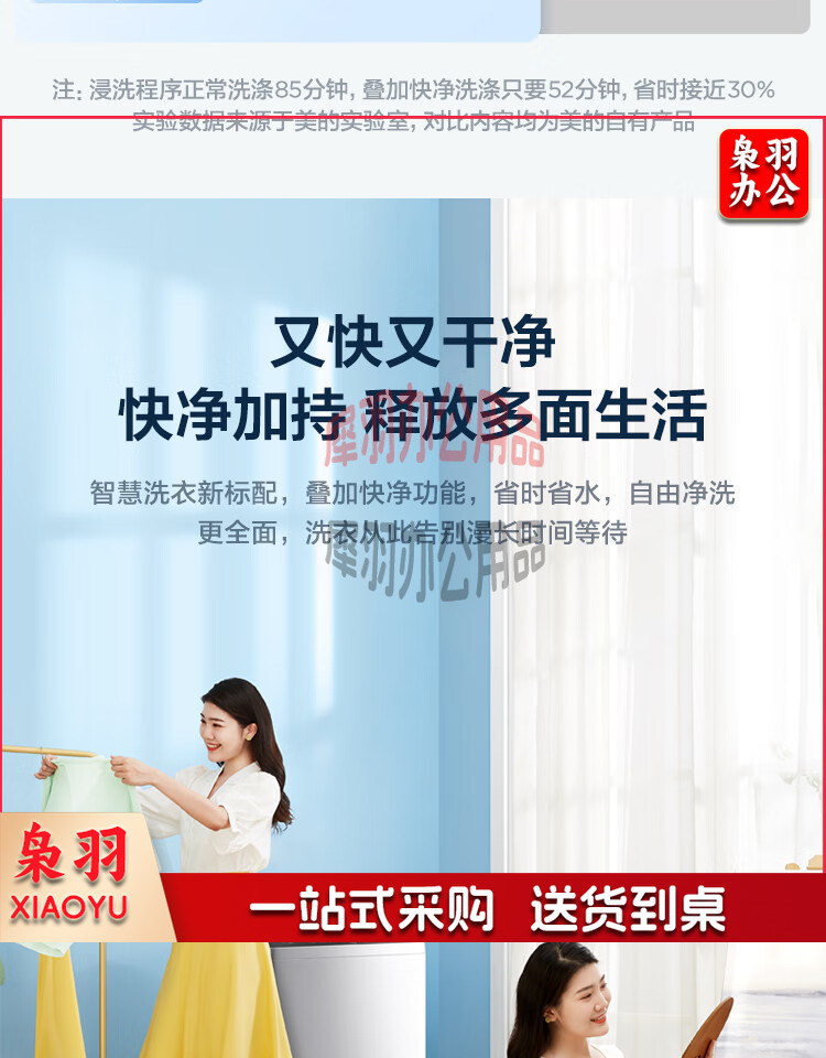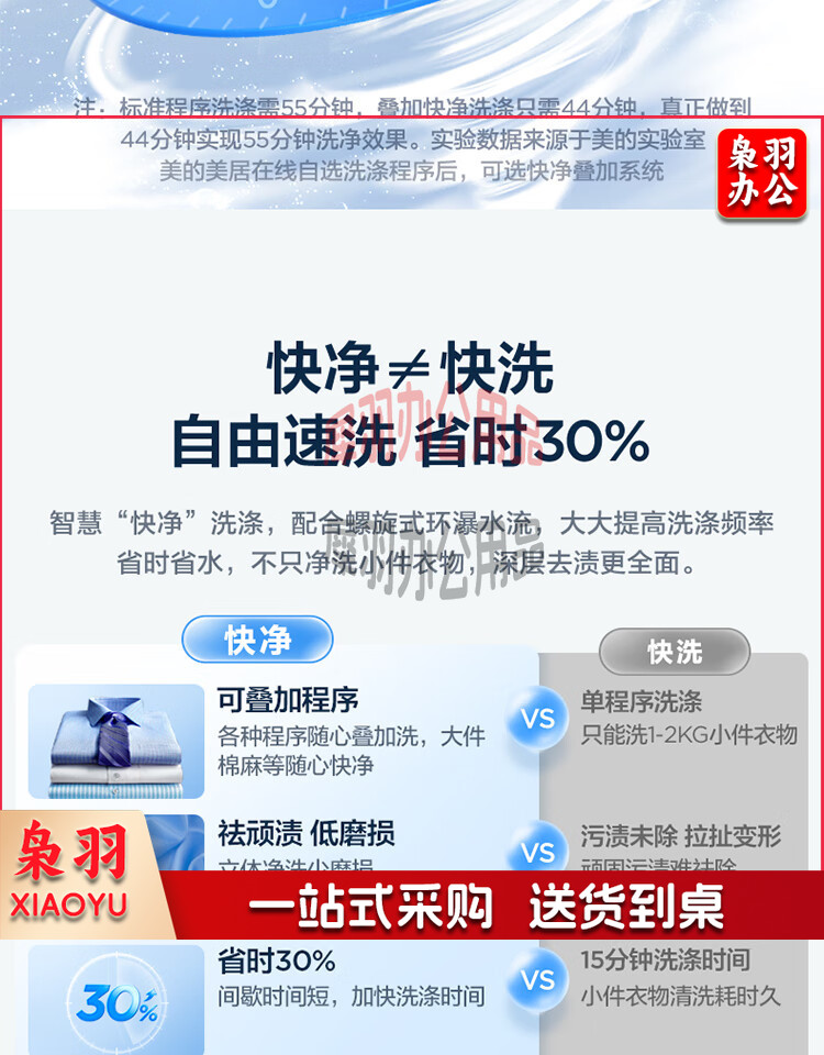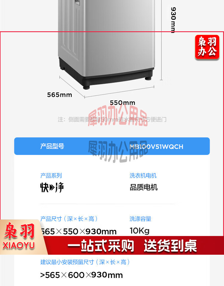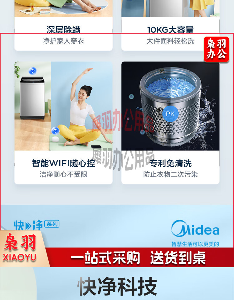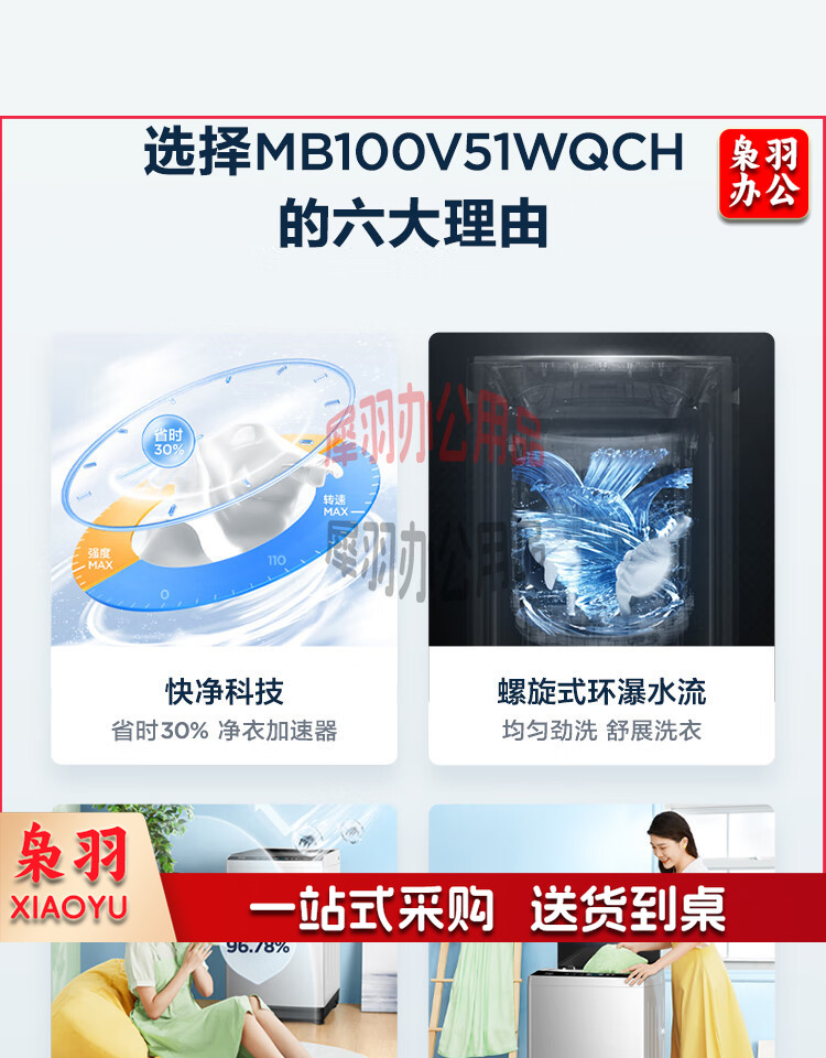 美的(Midea)波轮洗衣机全自动 10公斤免清洗 快净双水流 智能家电 快净系列 MB100V51WQCH