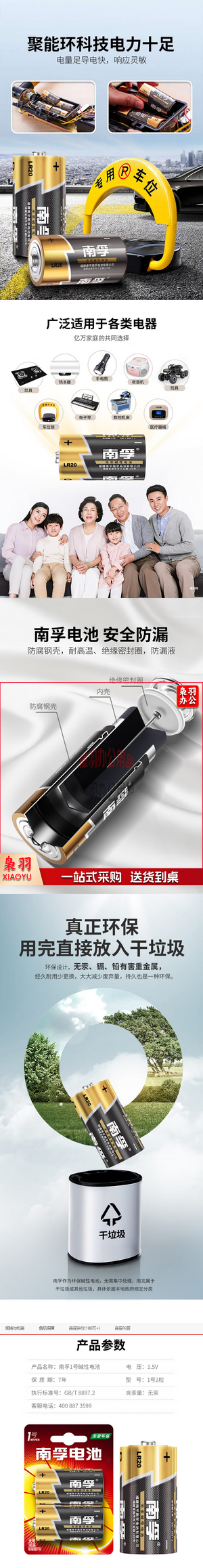 南孚(NANFU)1号碱性电池2粒 大号电池 适用于热水器/煤气燃气灶/手电筒/电子琴等 LR20-2B