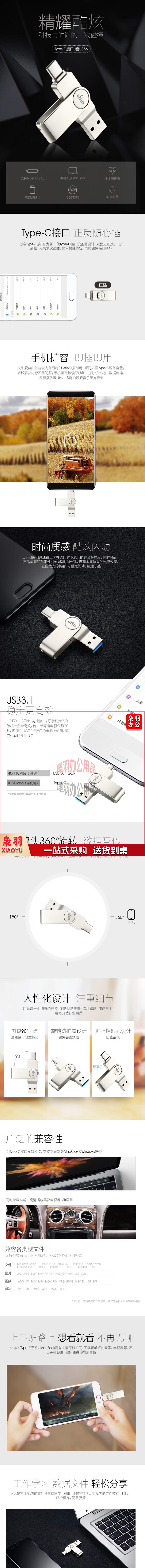 爱国者 U盘 U356 128GB (银) Type-C USB3.1 手机U盘 炫酷高速款 双接口手机电脑用