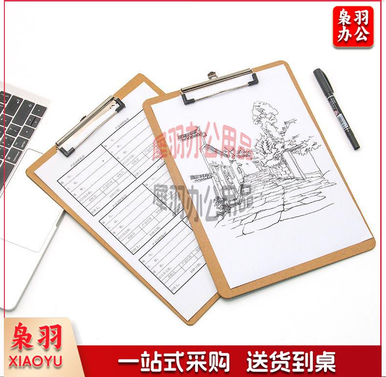 原木质感金属强力夹书写板夹文件夹棕色 7044