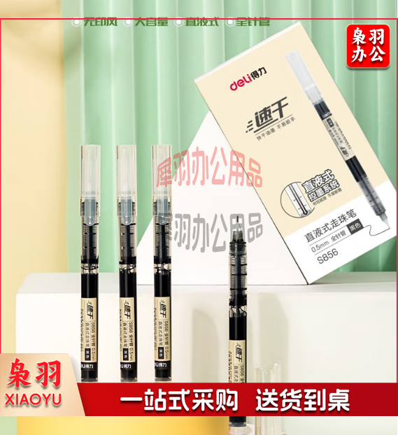 得力(deli)无印风直液中性笔签字笔 黑色碳素水性笔 学生水笔走珠笔 速干刷题笔 S856黑色12支 0.5mm WLSZ0114203215195