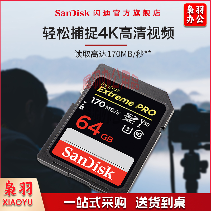 闪迪相机卡 4K高清SD卡 UHS-I微单存储卡微单反摄像储存大卡内存sd卡内存卡 64G sd卡SDXC新升级读速高达200Mb/s