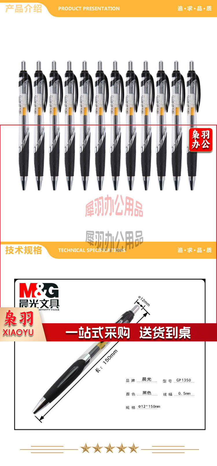 晨光 M&G GP1350 中性笔(按动式 0.5mm 黑色 单支装)yykj-230112151015