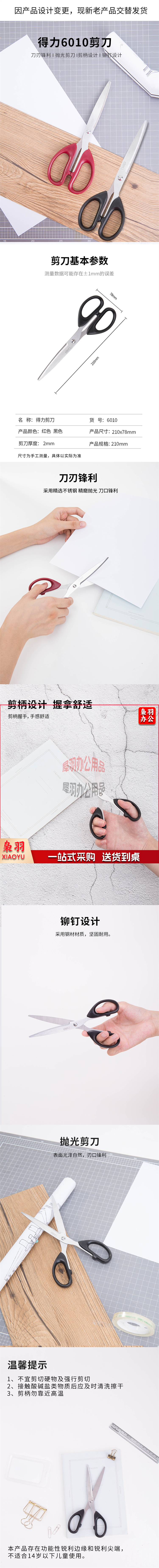 得力deli剪刀6010 210mm(红色、黑色)12把/盒(颜色随机)