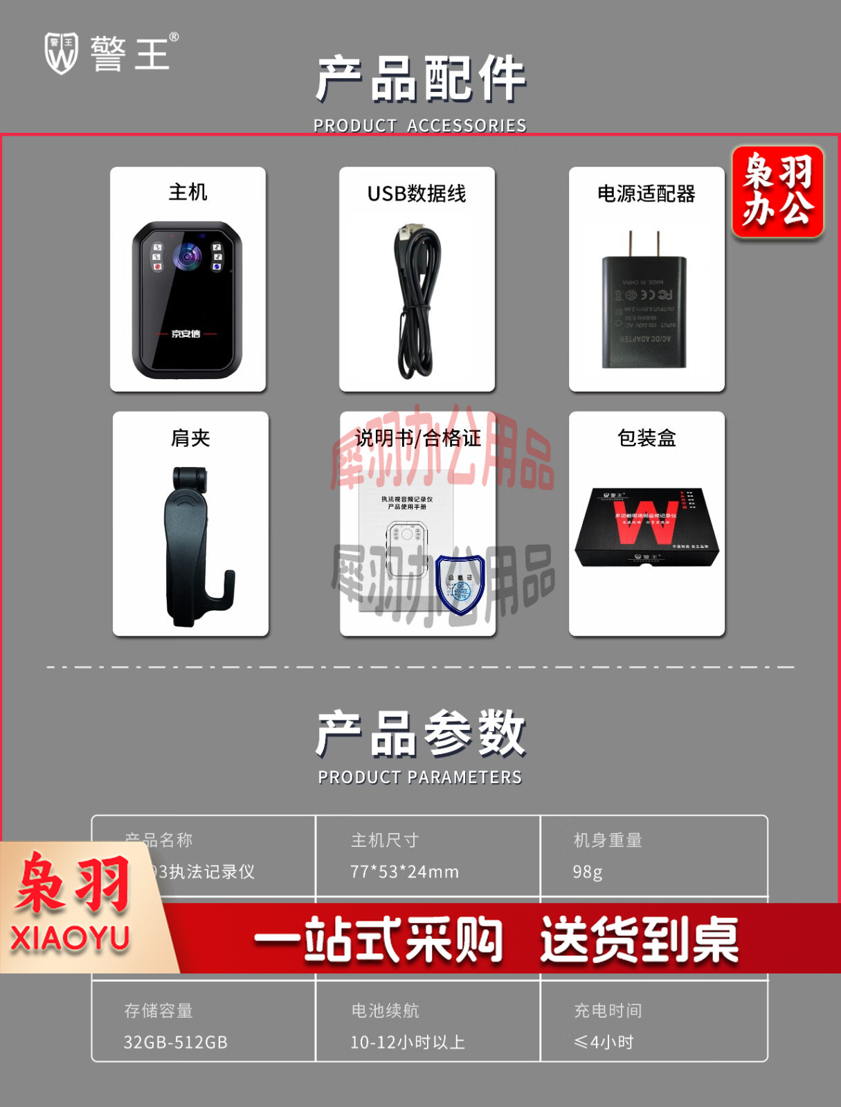 警王HD93京安信系列执法记录仪红外夜视红蓝爆闪8小时以上续航 64G