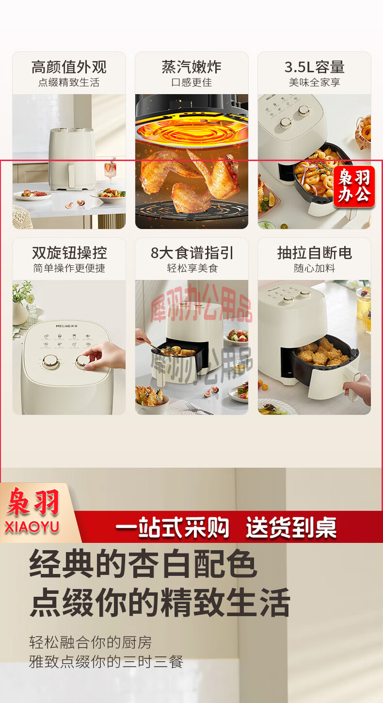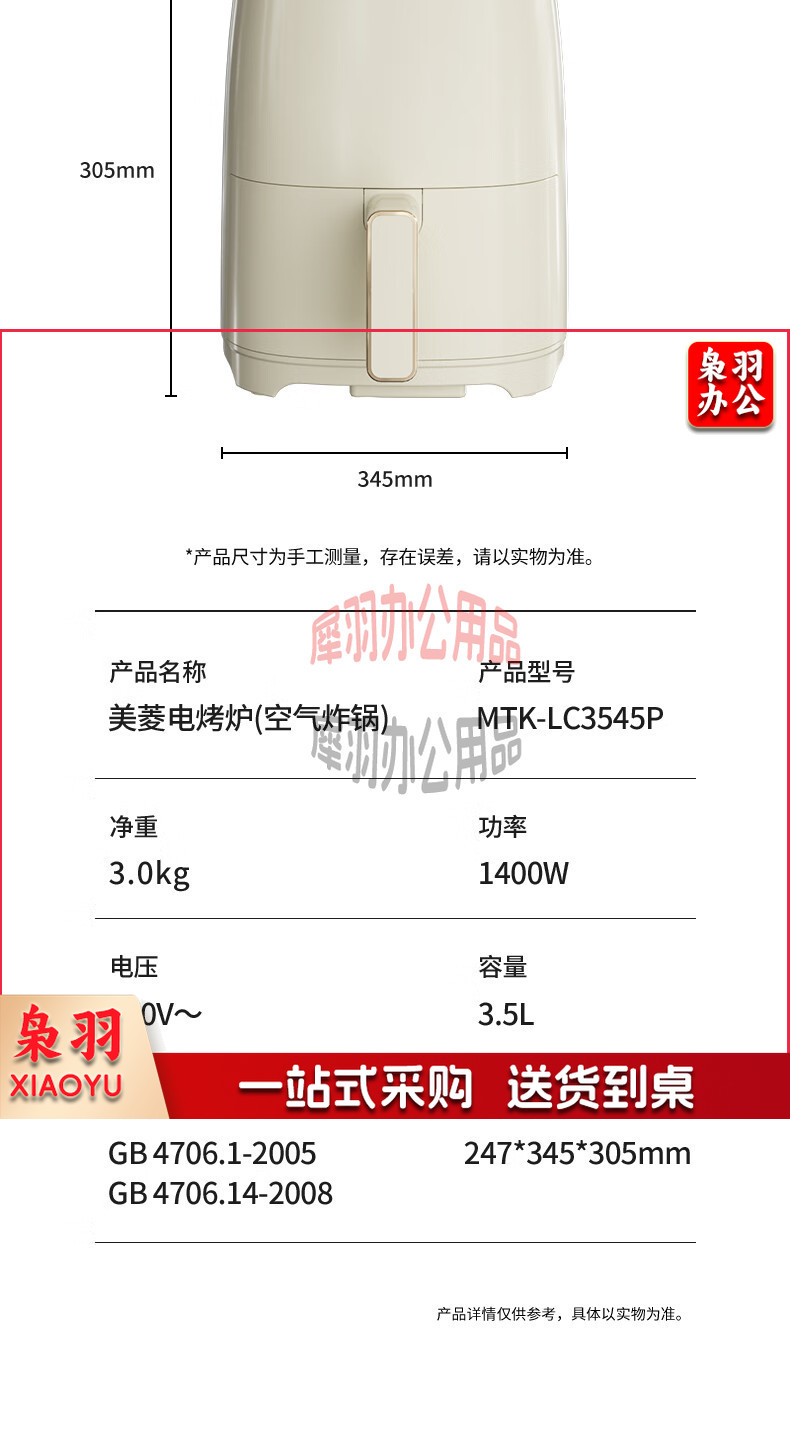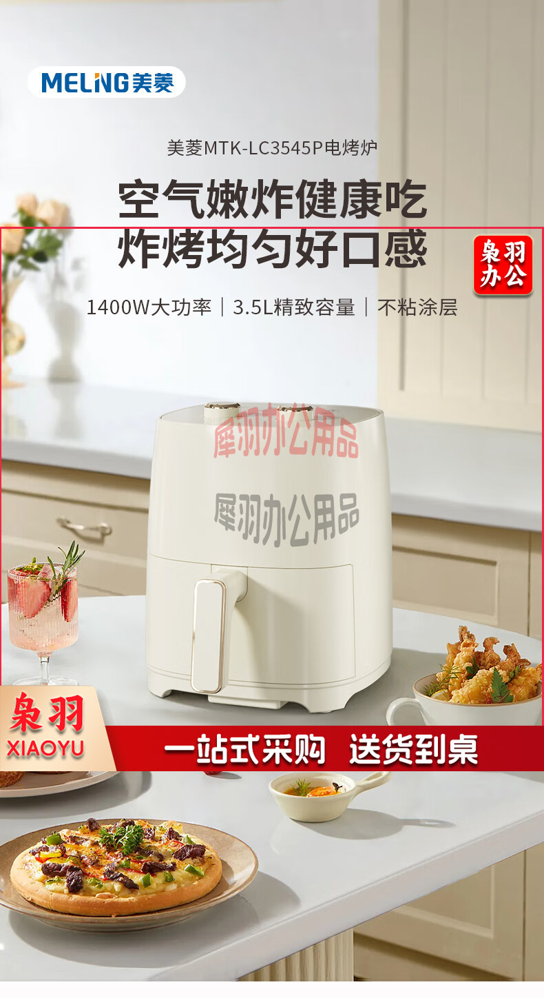 美菱(MeiLing)MTK-LC3545P电烤炉空气炸锅 不沾涂层双旋钮操作3.5L容量