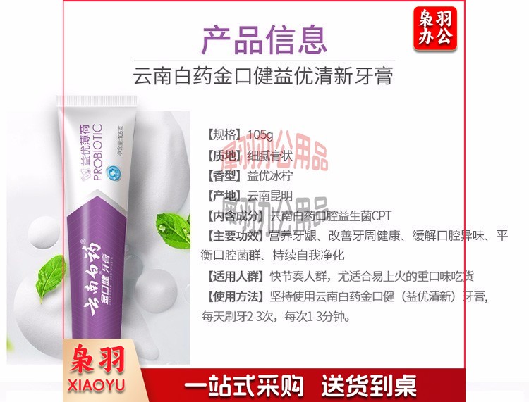云南白 金口健 牙膏 持久清新口气 平衡口腔菌群 (益优薄荷145g )