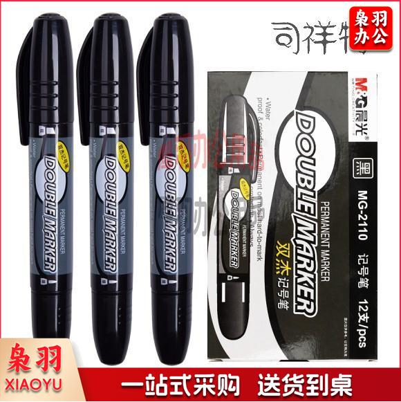 晨光(Mamp;G)黑色双头粗杆记号笔 油性马克笔 12支/盒MG2110