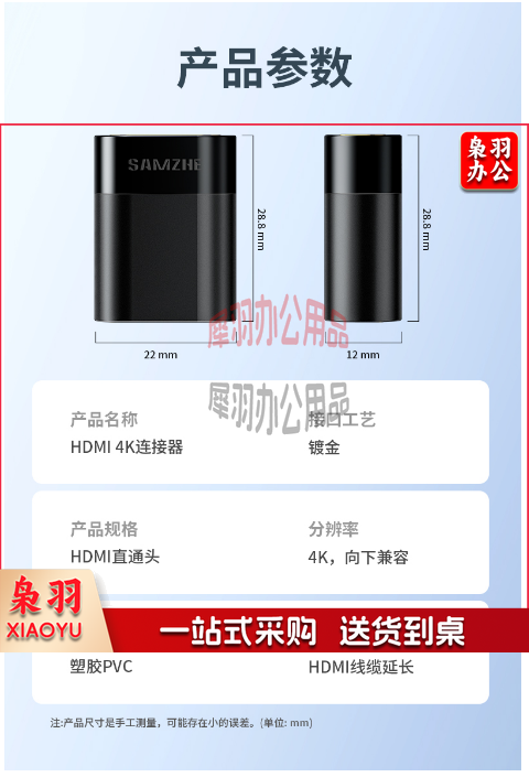 山泽(SAMZHE)HDMI延长器转接头 母对母高清连接头2.0版 HDMI线对接头直通头串联延长线 黑色HFD-02