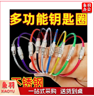 包胶彩色钢丝绳不锈钢钥匙圈绳户内外配件汽车拉伸回弹钥匙扣