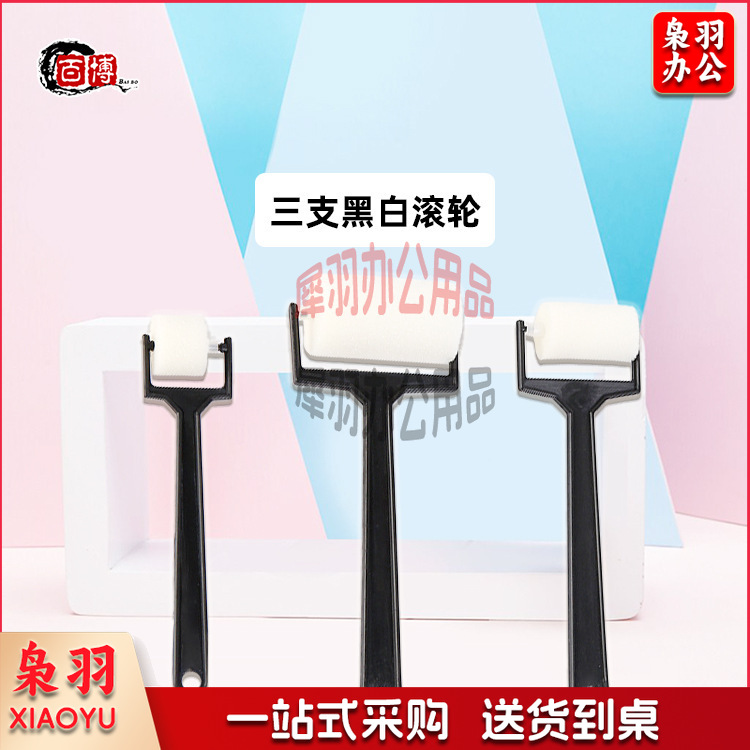 儿童黑白滚筒海绵刷3支绘画套装 幼儿园DIY涂鸦彩绘工具海绵刷子