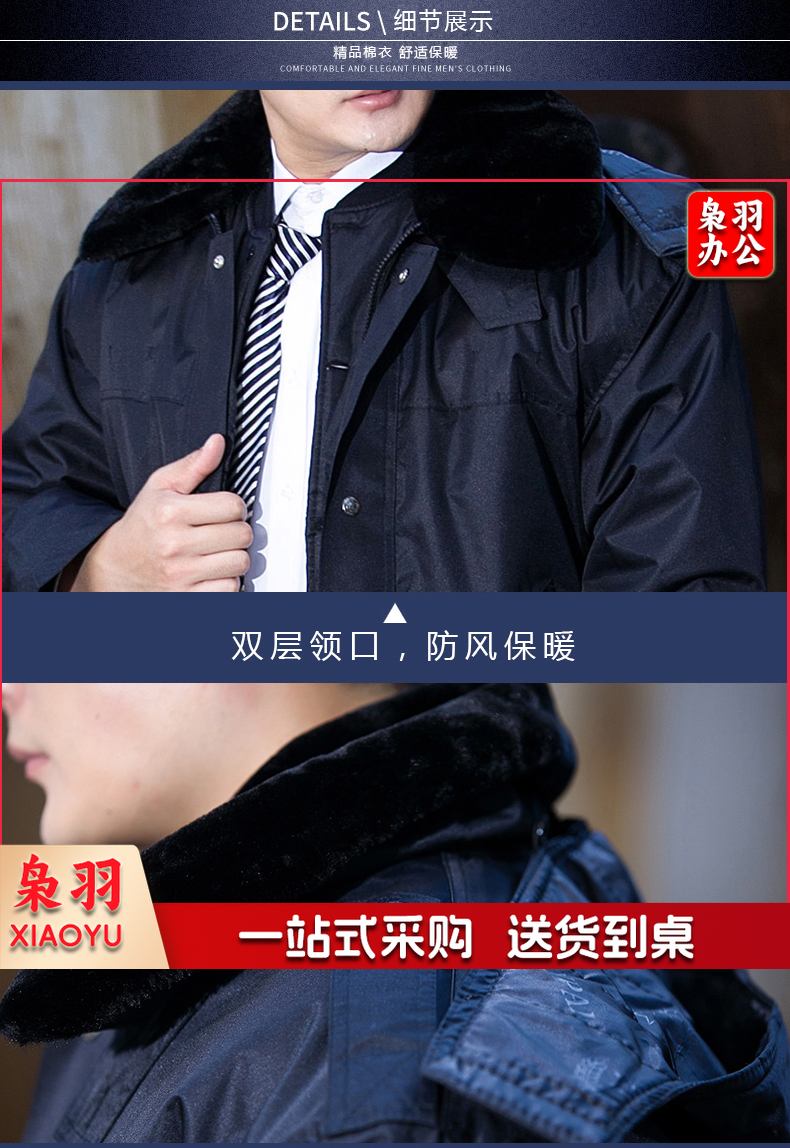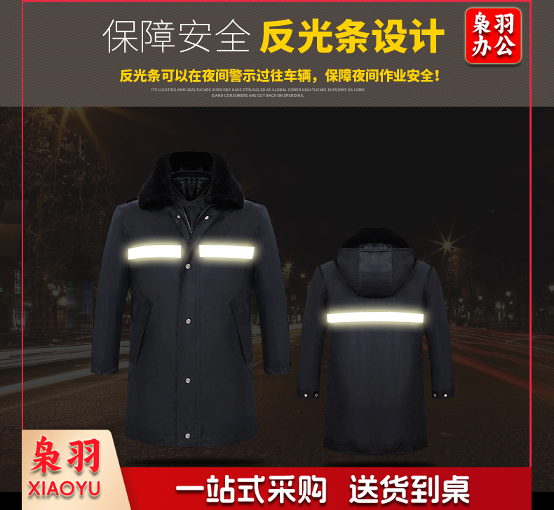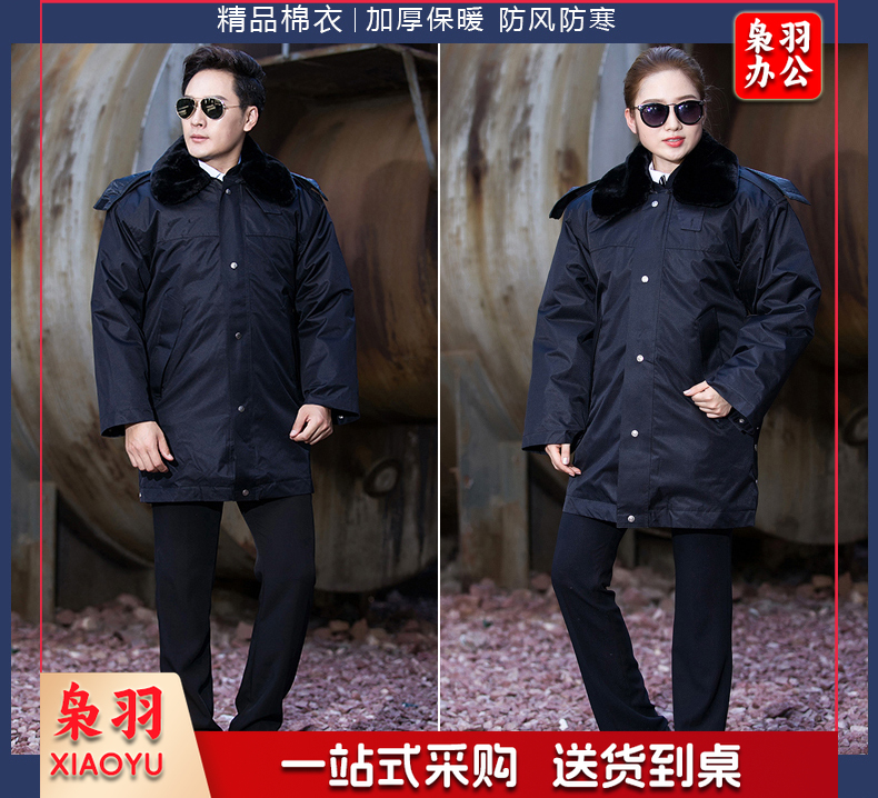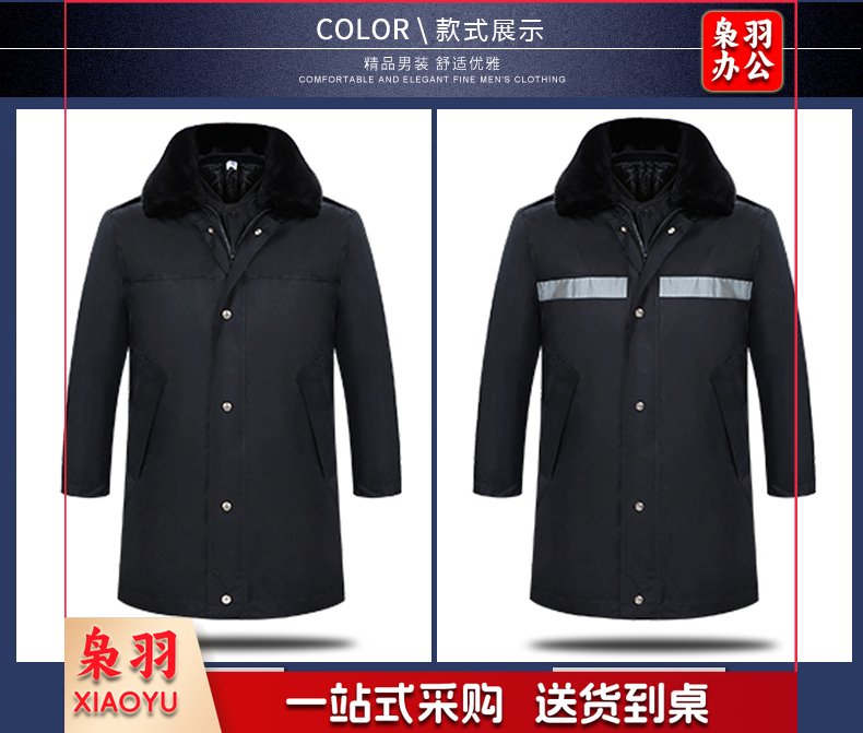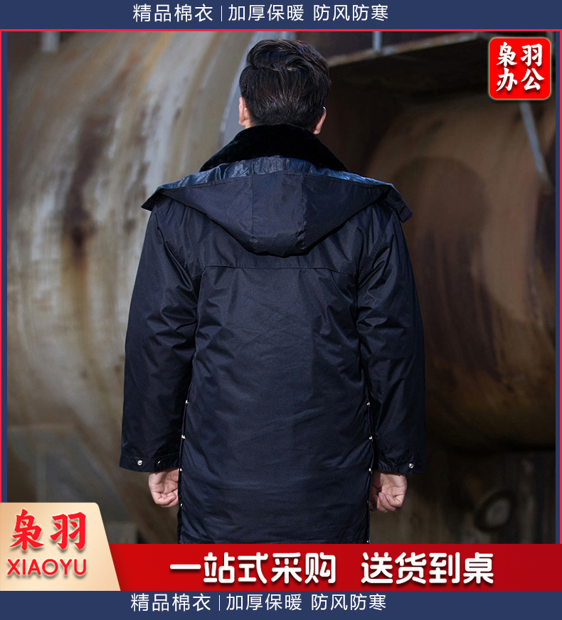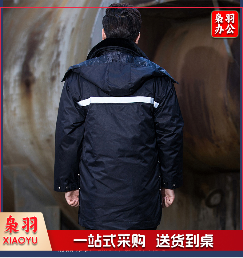 保安服 男冬季多功能保安大衣 中长款加厚保暖防寒服保安棉衣 物业工作服作训服 活里活面棉袄 带反光条中长多功能大衣 XL/170(建议125-135斤)
