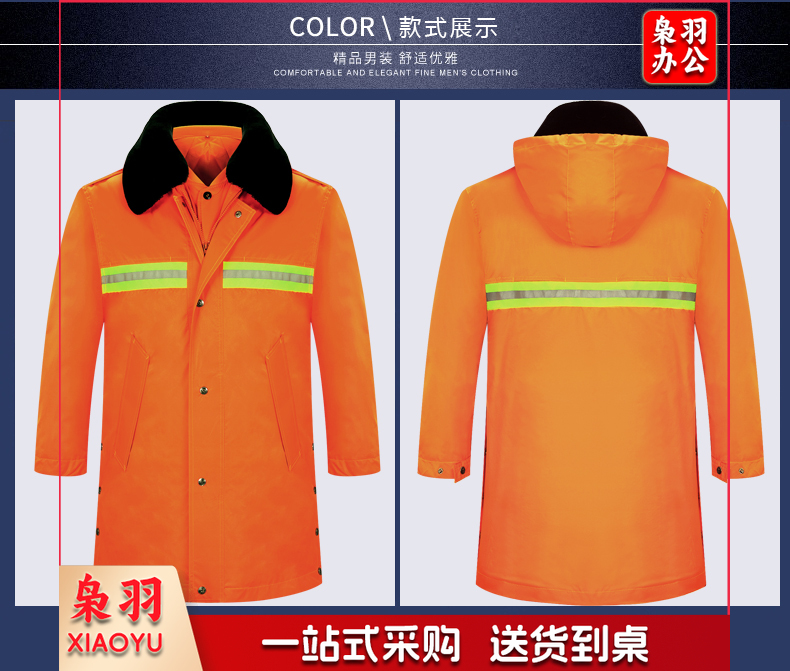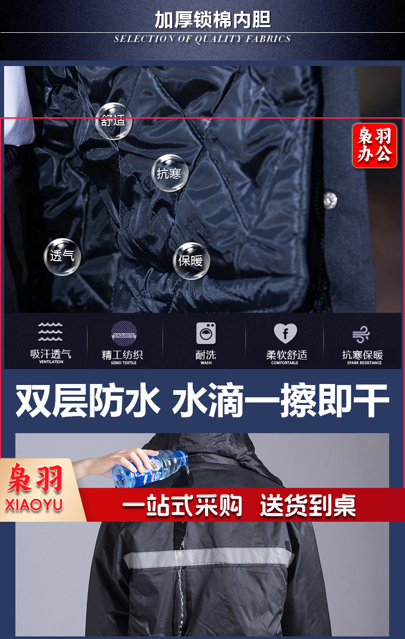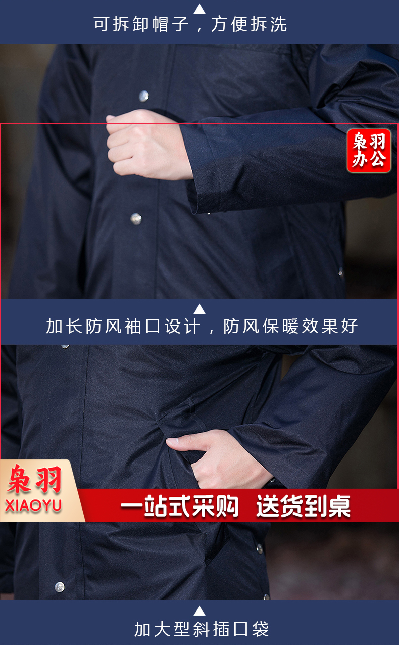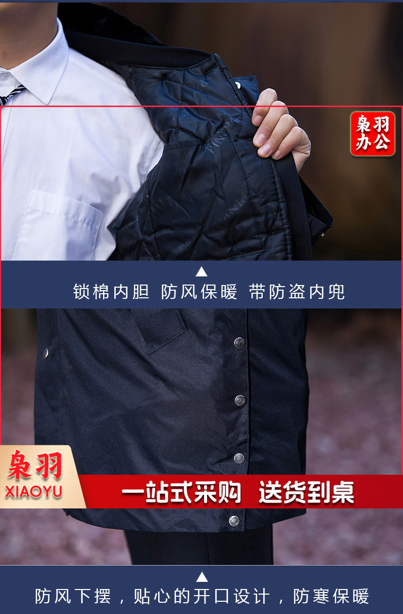保安服 男冬季多功能保安大衣 中长款加厚保暖防寒服保安棉衣 物业工作服作训服 活里活面棉袄 带反光条中长多功能大衣 XL/170(建议125-135斤)