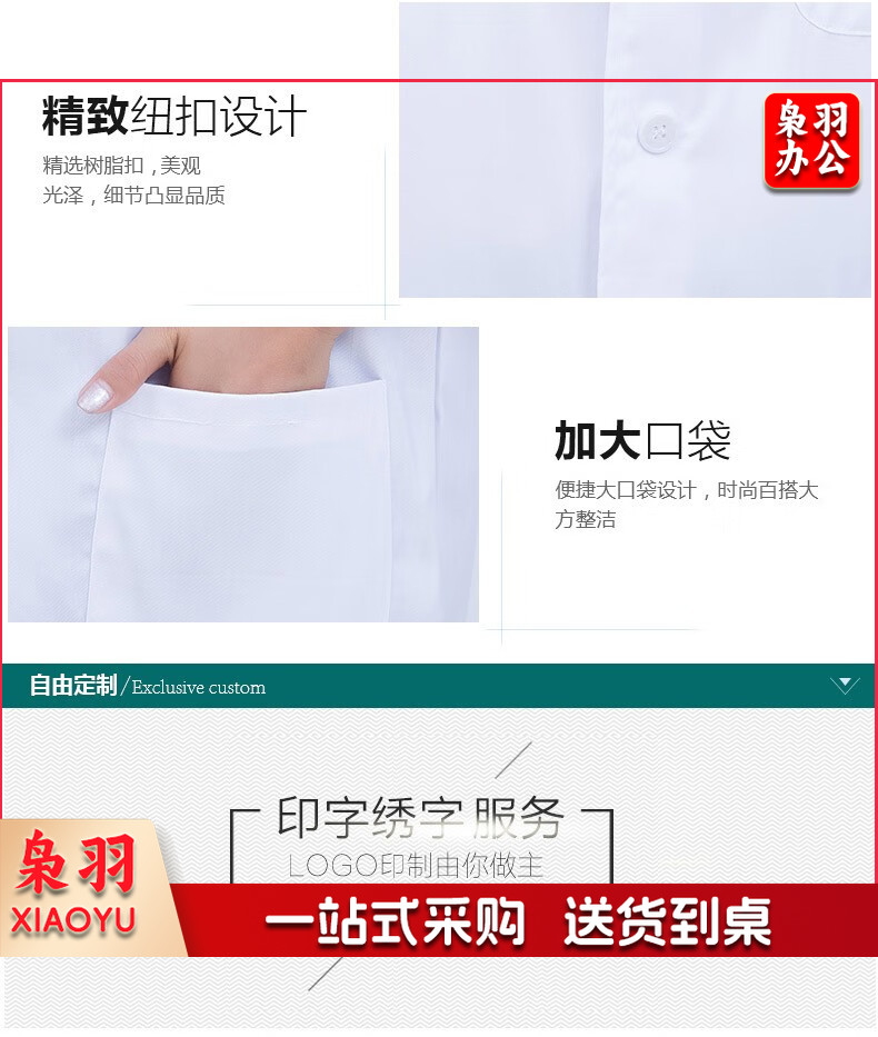 医院用白大褂 男女医生工作服 学生化学实验服 春秋长袖医护士服 (纽扣袖)长袖高棉白大褂 165/M(建议115-125斤)