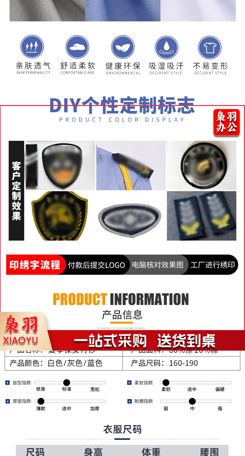 保安服夏装短袖夹克衬衫薄款男女小区物业工作服套装安保作训制服衬衣上衣加肥加大定制 白色短袖上衣+贴标160