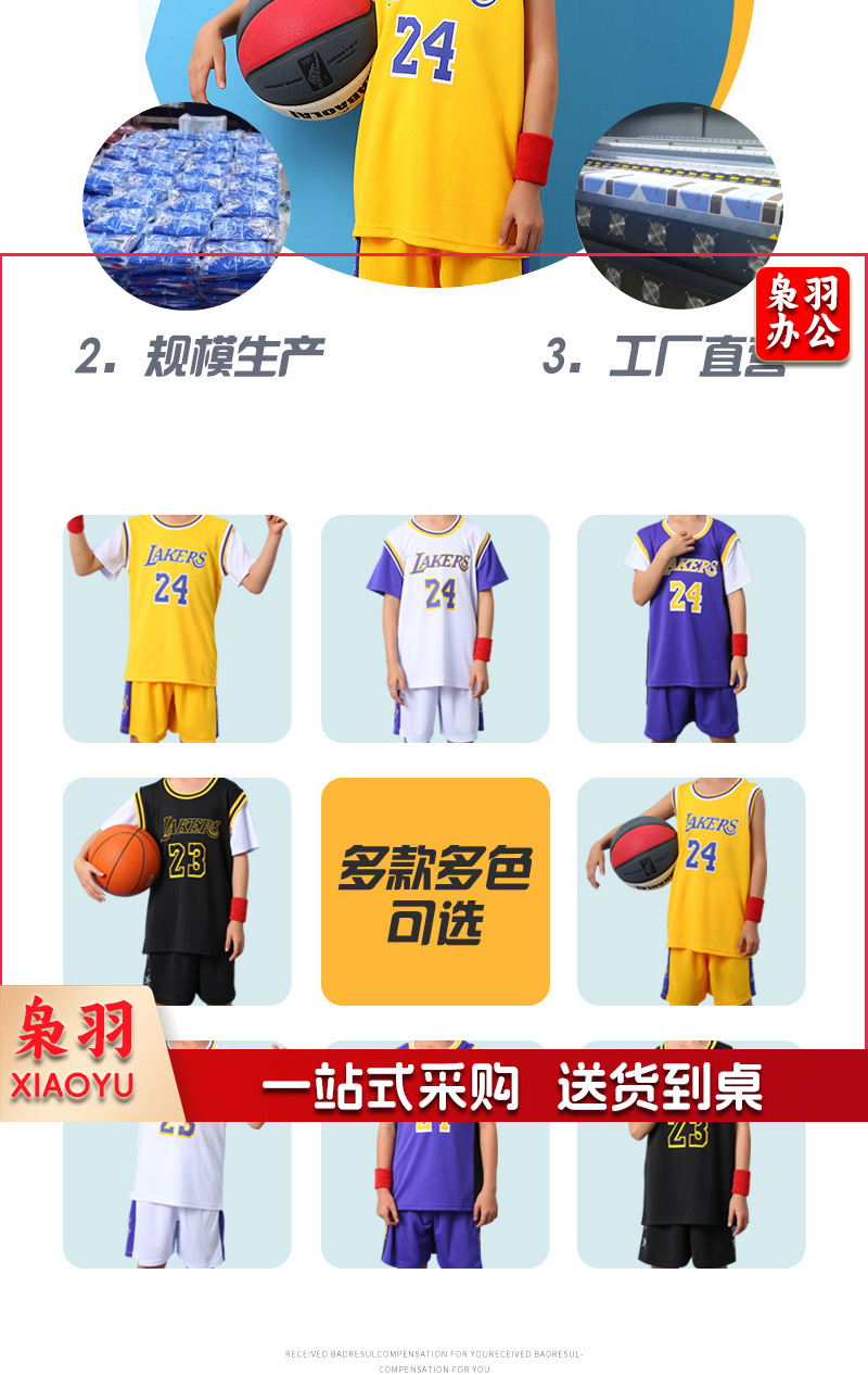 篮球服 儿童篮球服套装男童科比球衣短袖女夏季幼儿园比赛训练运动服装、--