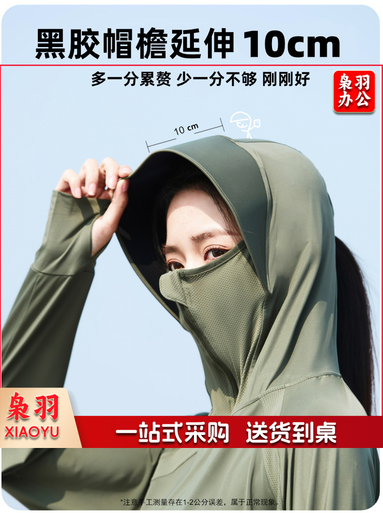 最新款防晒衣防晒服黑胶帽檐防晒衣女士冰丝连帽透气外套防紫外线防晒服0