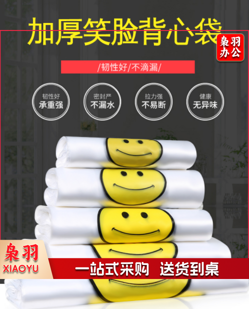 背心袋【加厚无异味 48*30cm】透明笑脸购物袋100只食品打包袋外卖塑料袋超市手提袋马甲袋 JH9006