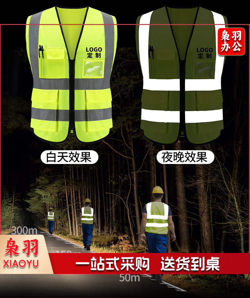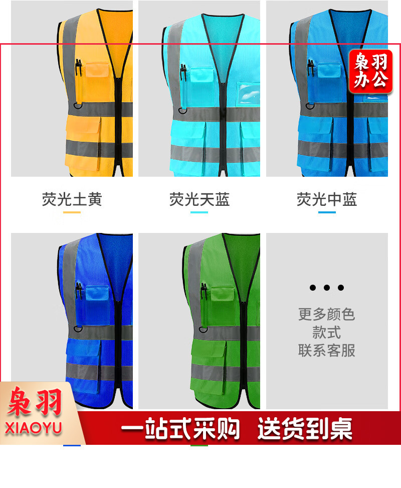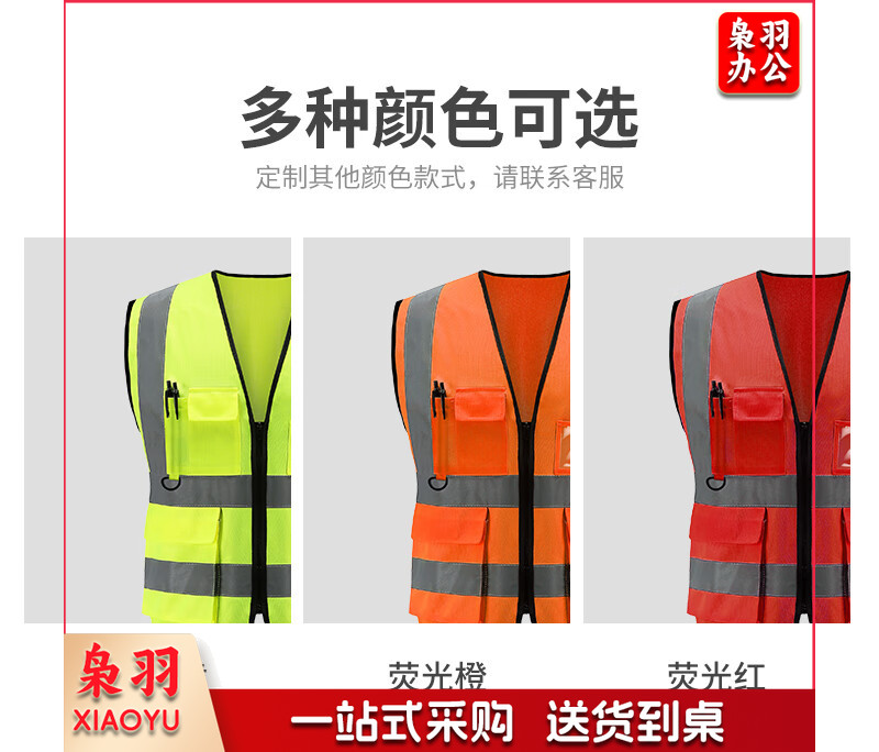 反光背心马甲高亮多袋反光衣环卫安全交通工地施工建筑免费印字 荧光橙10件装(带口袋)