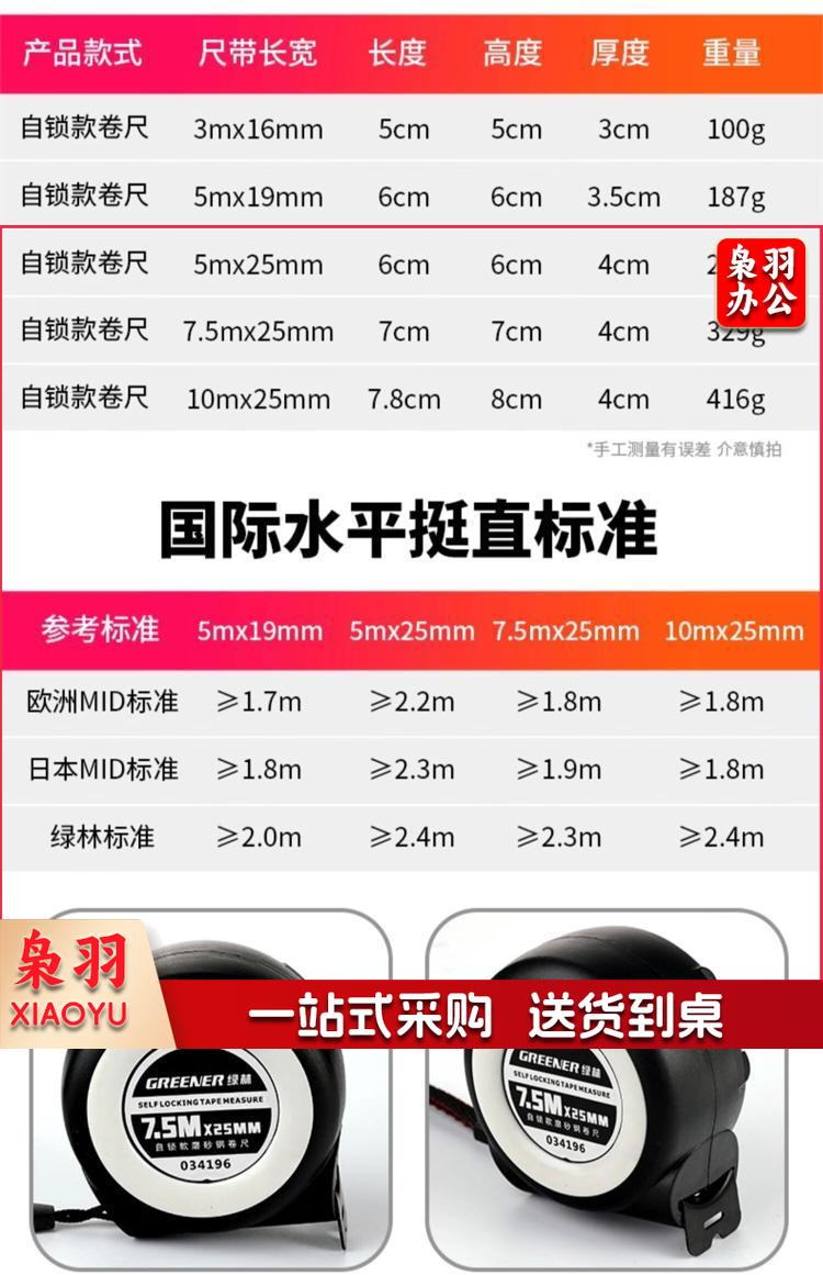 绿林 034195 II级精度 加厚加硬盒尺 5*25mm 单位:个