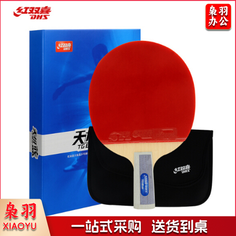 红双喜(DHS)天极蓝乒乓球拍双面反胶皮7层底板附拍套 可选横拍 直拍...