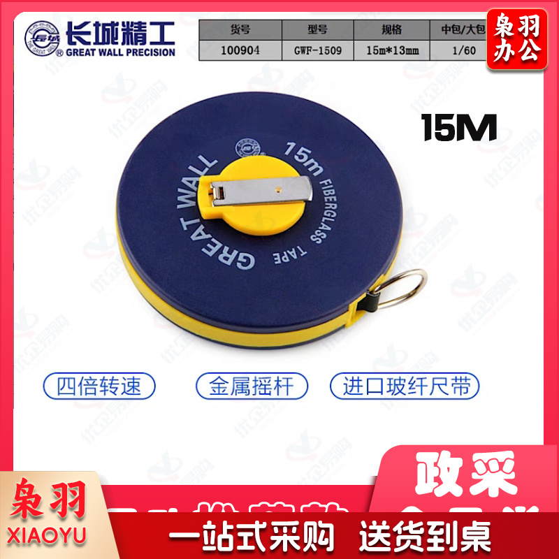 长城精工皮尺 皮卷尺防水建筑工程尺子纤维软卷尺15米.