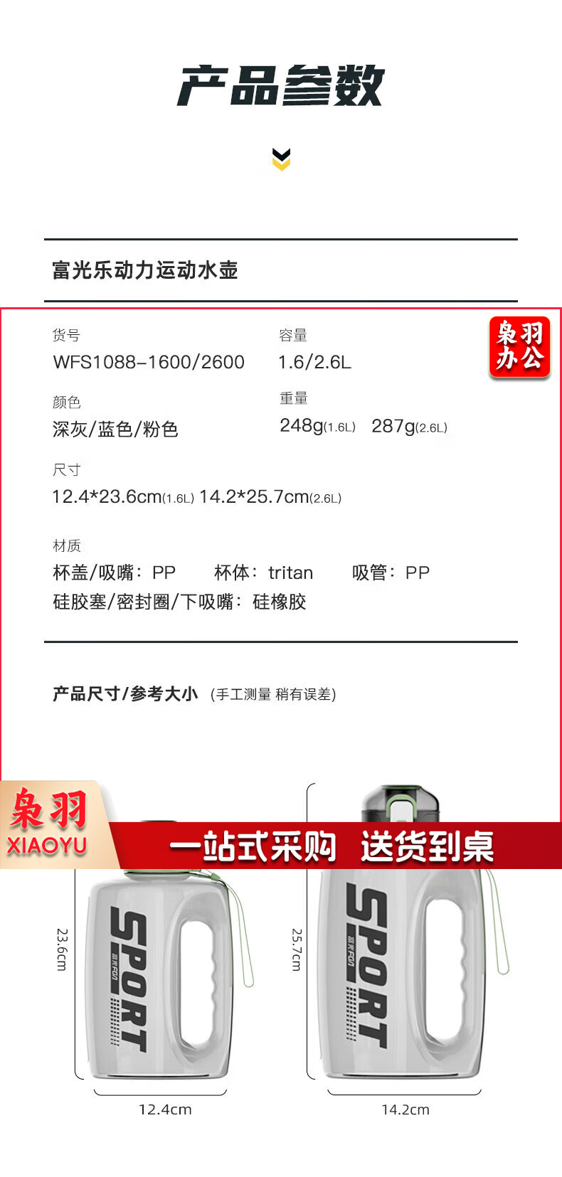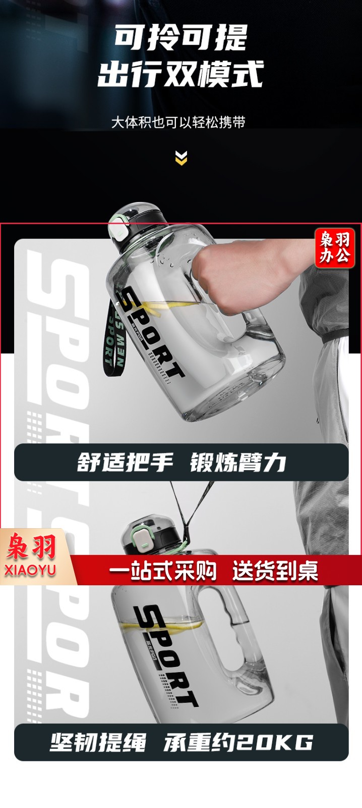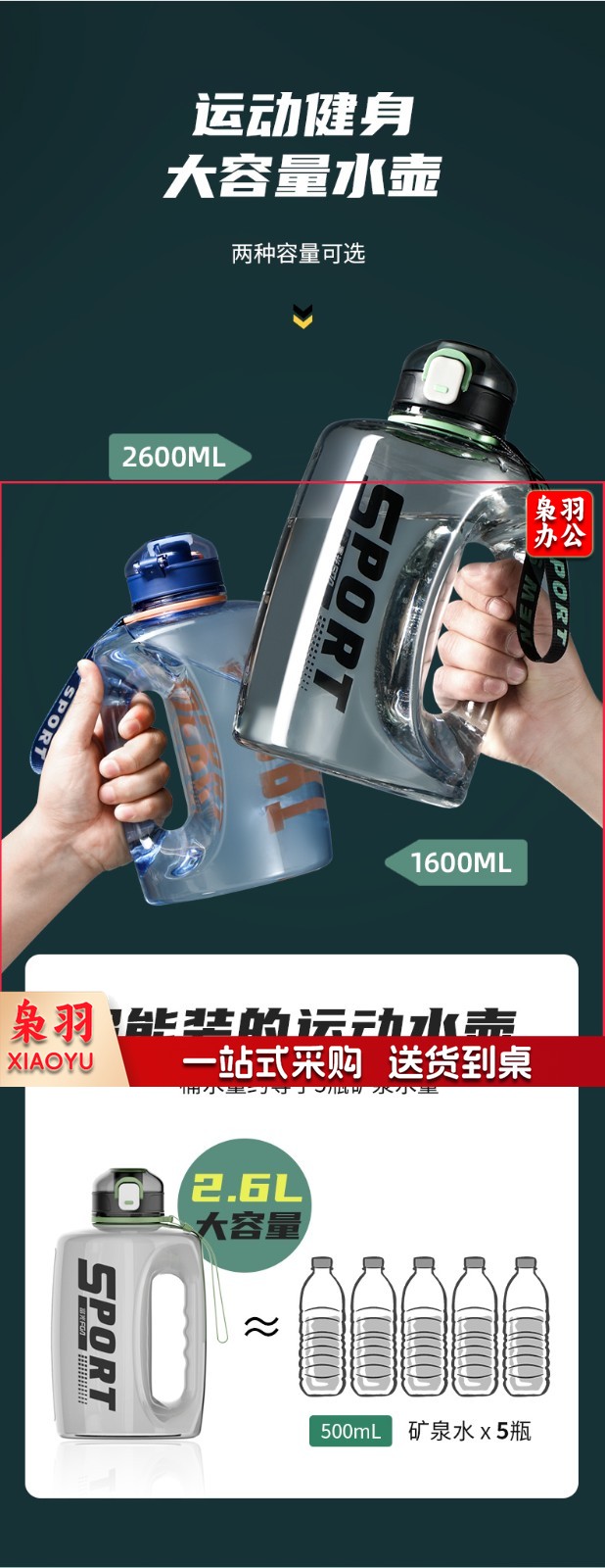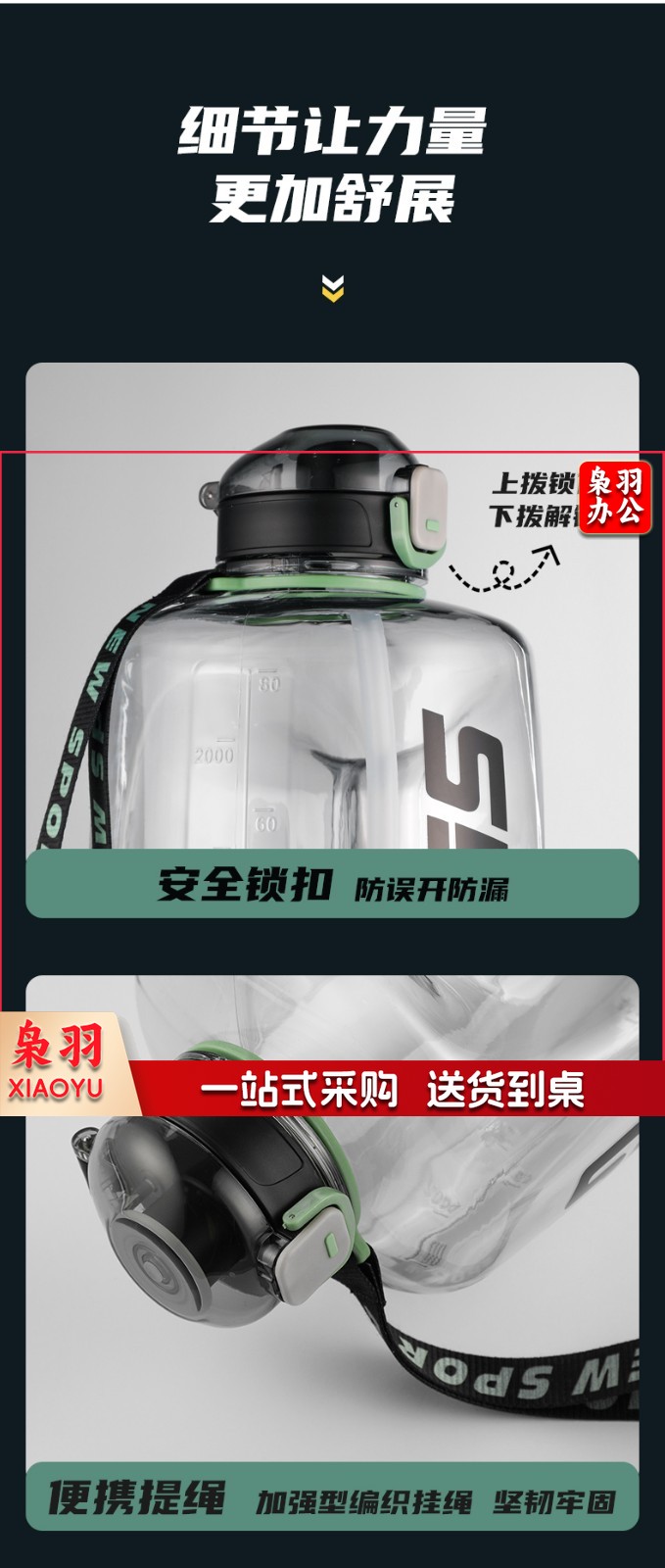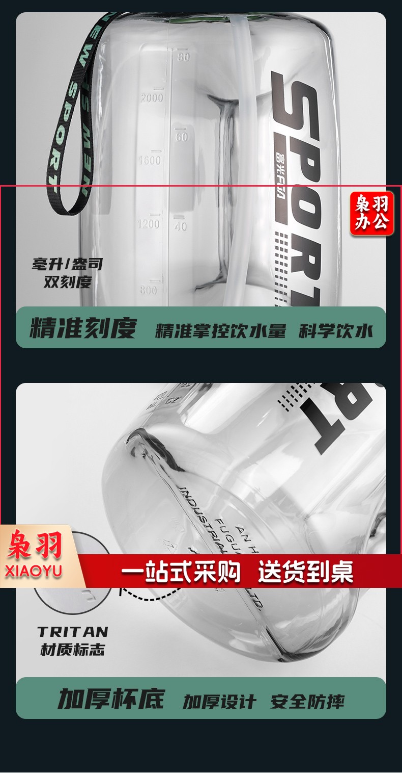 次日达-富光吨杯吨桶大容量塑料杯水杯Tritan刻度吸管运动户外大肚水壶杯子 2600ml