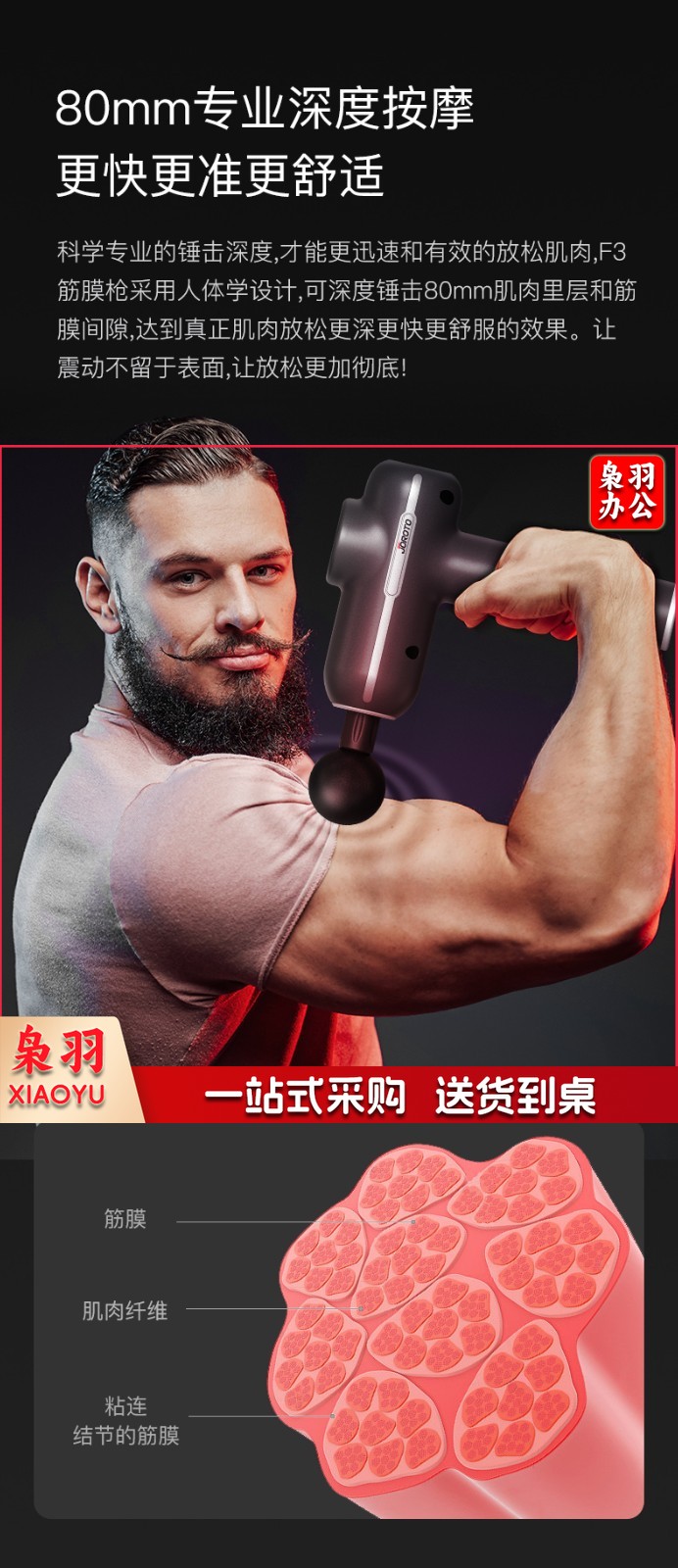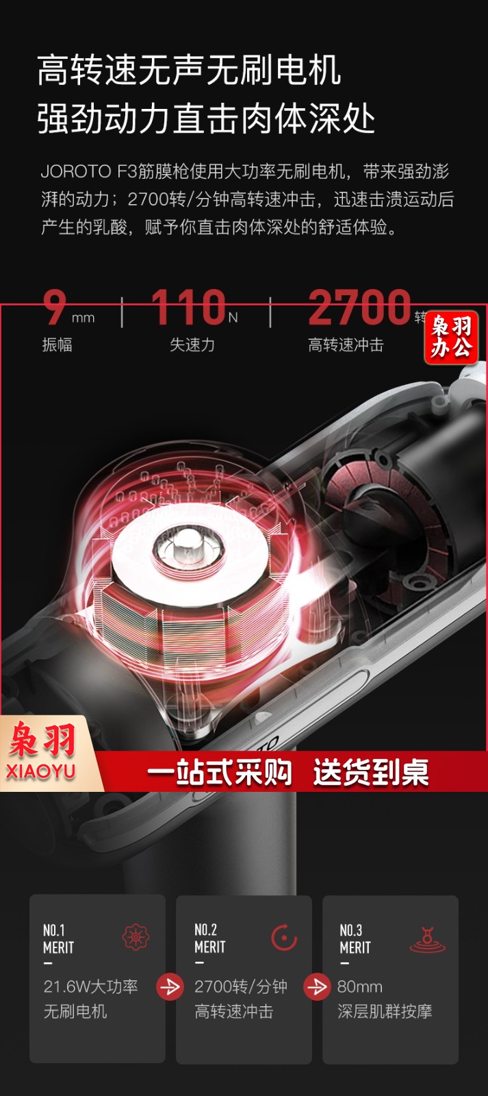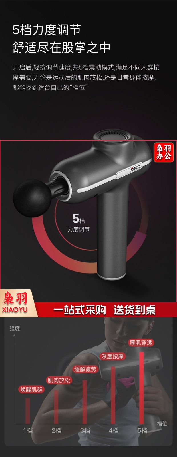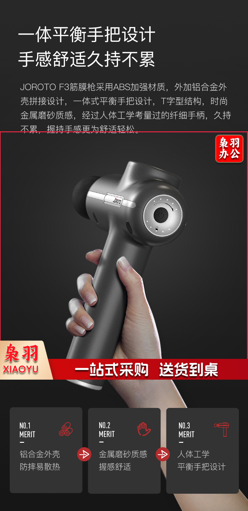 捷瑞特(JOROTO) 美国品牌筋膜枪F3按摩器放松肌肉深层高频震动健身器材智能液晶屏触屏颈膜 新品上市