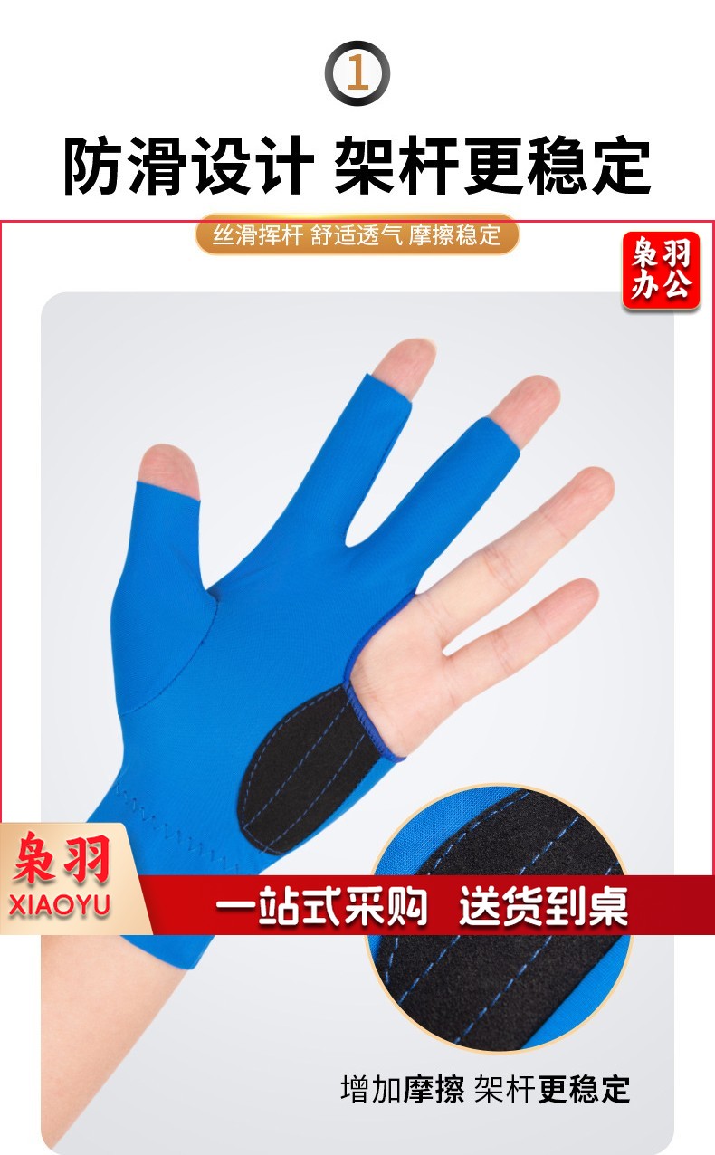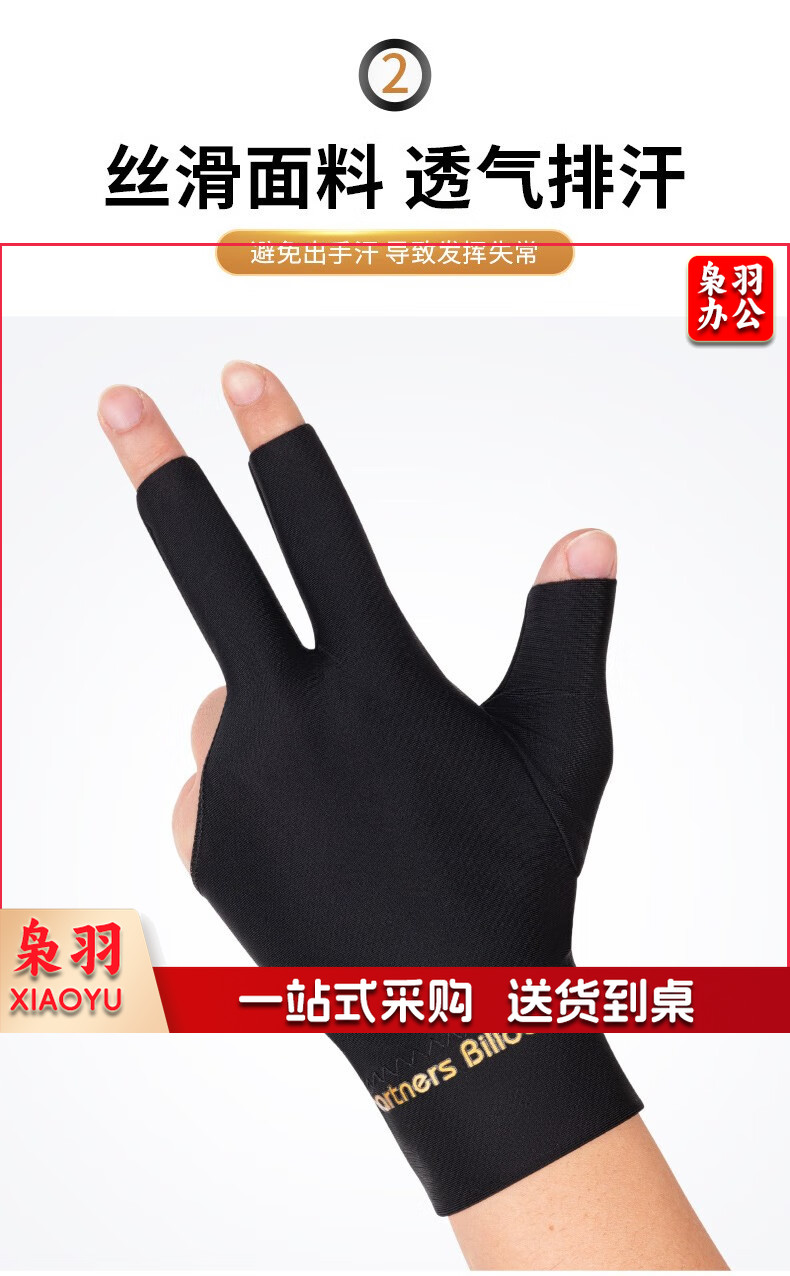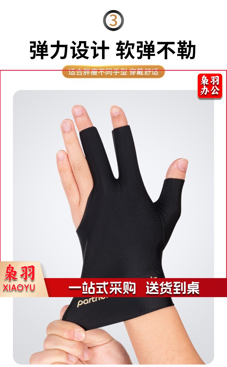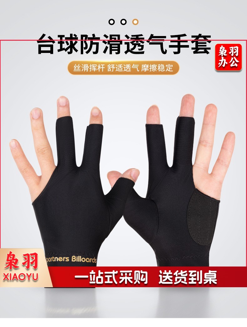 台球手套三指桌球手套黑色专业台球手打台球手套左手右手 黑色【2只】防滑透气