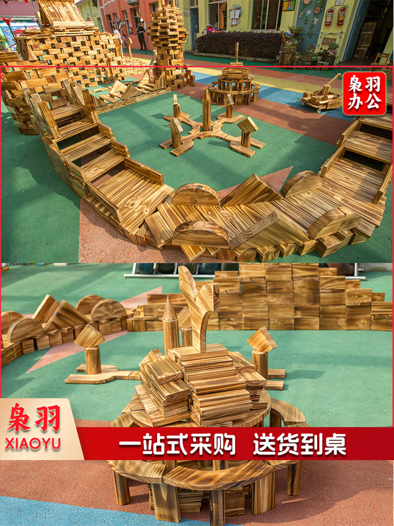 幼儿园超大型户外碳化大积木原木炭烧儿童建构区材料搭建玩具