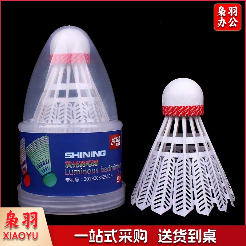 红双喜发光羽毛球室外荧光发亮耐打夜光尼龙塑料羽毛球2只装