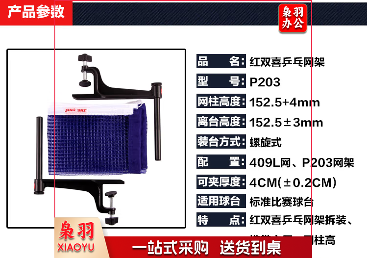 红双喜 P203乒乓球网比赛网架(球台球桌用)