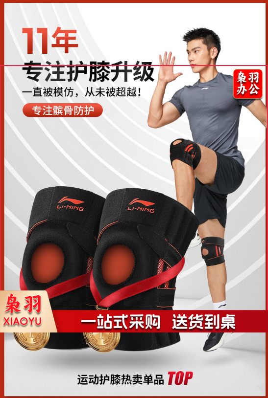 李宁护膝运动男女篮球护具跑步装备半月板防撞支撑羽毛球足球登山护膝盖关节固定护漆 均码