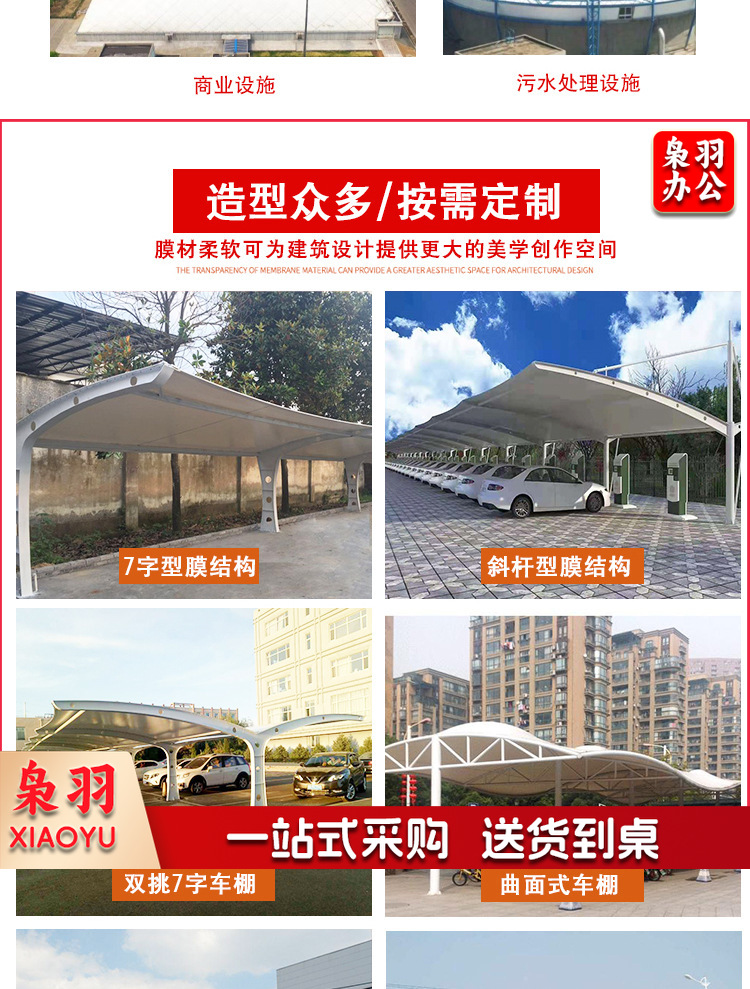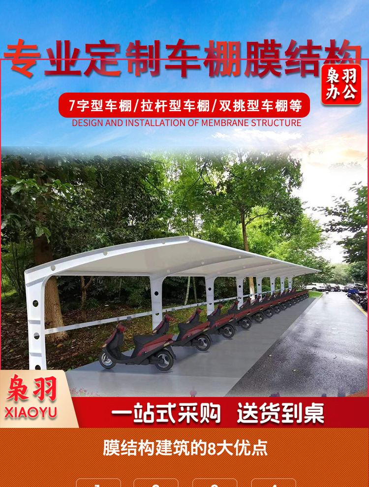 膜结构停车棚汽车遮阳棚张拉膜布小区电动自行车棚充电桩雨棚