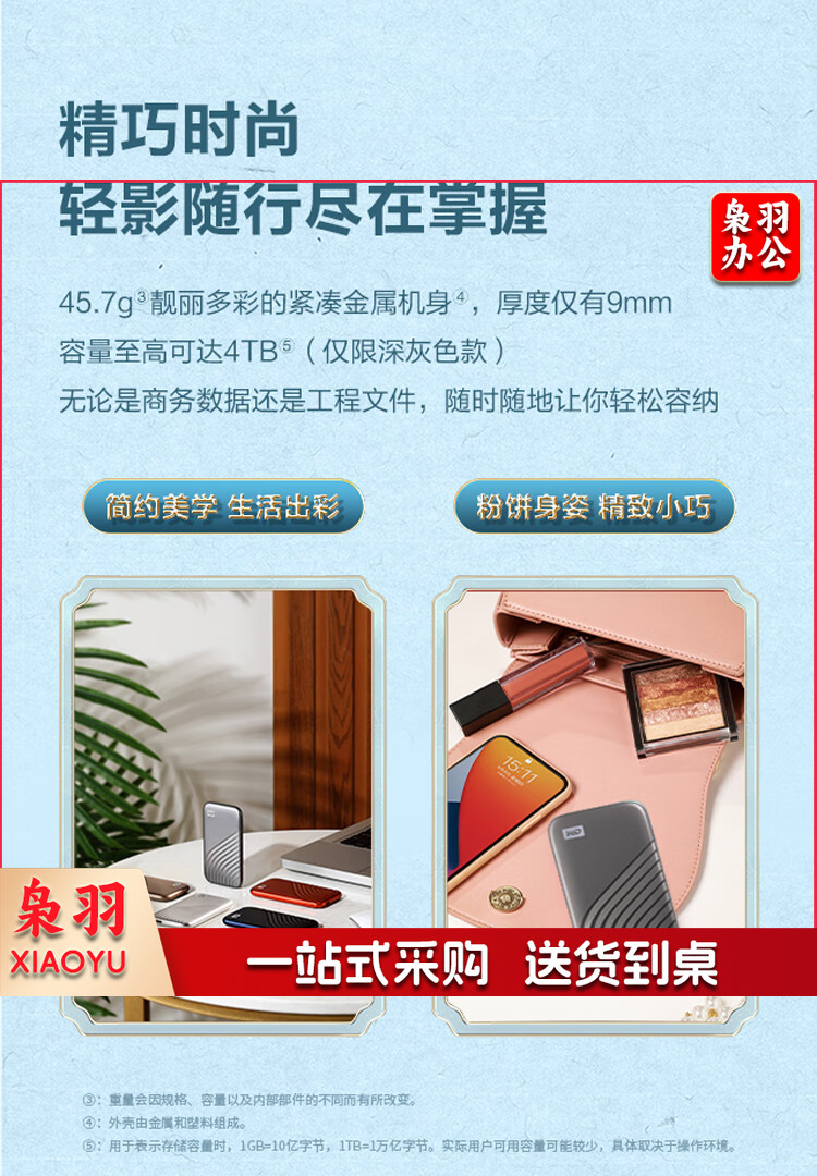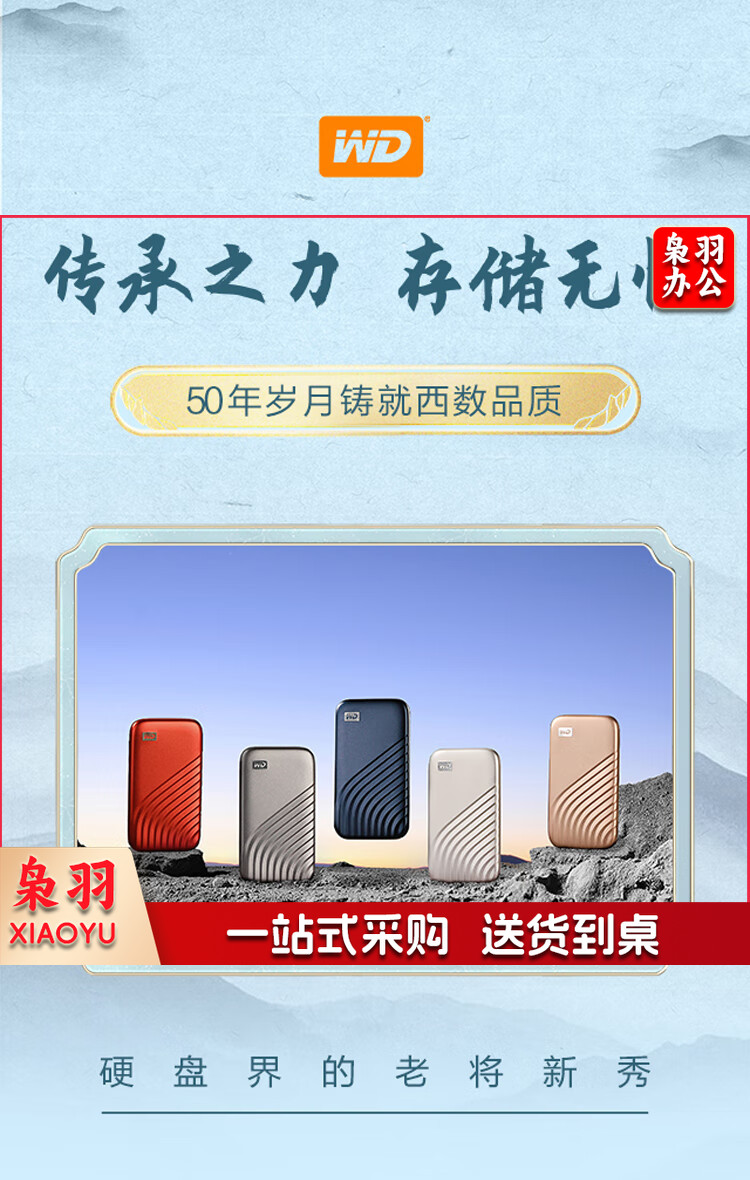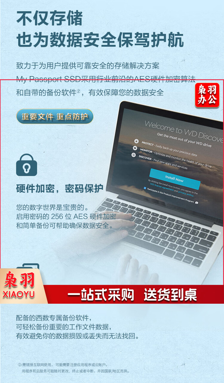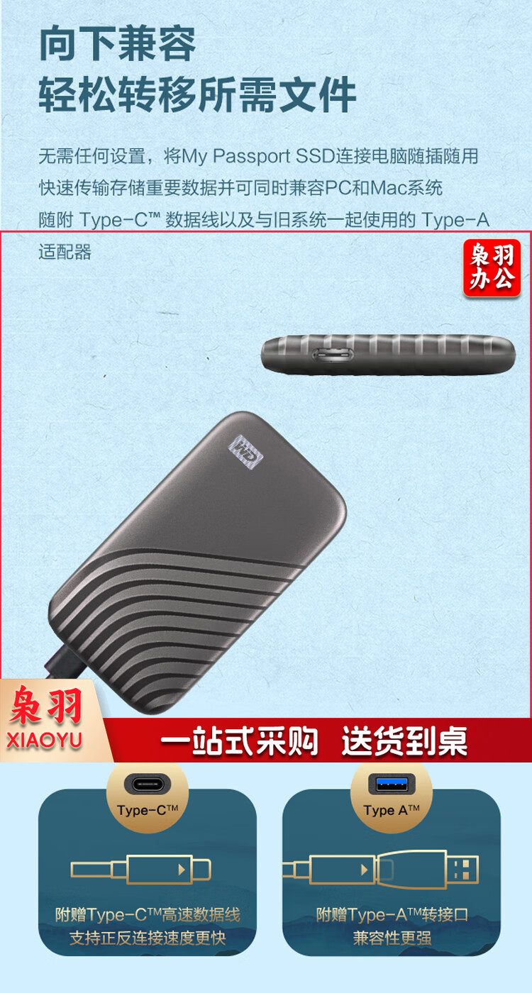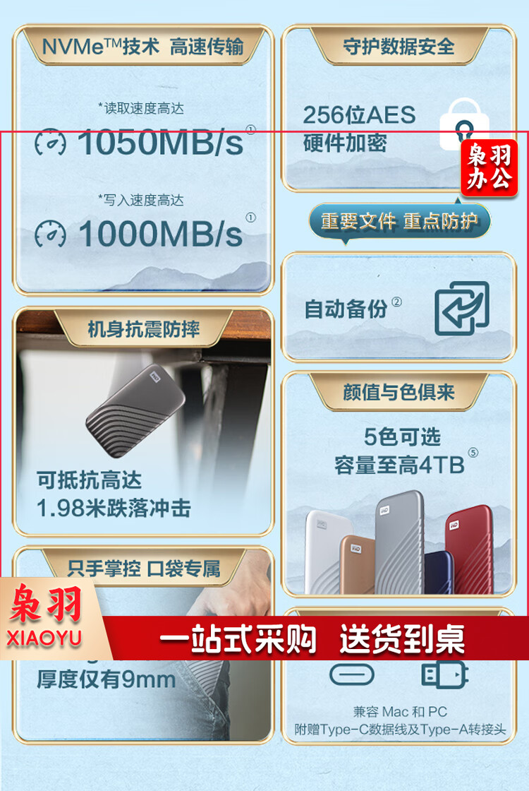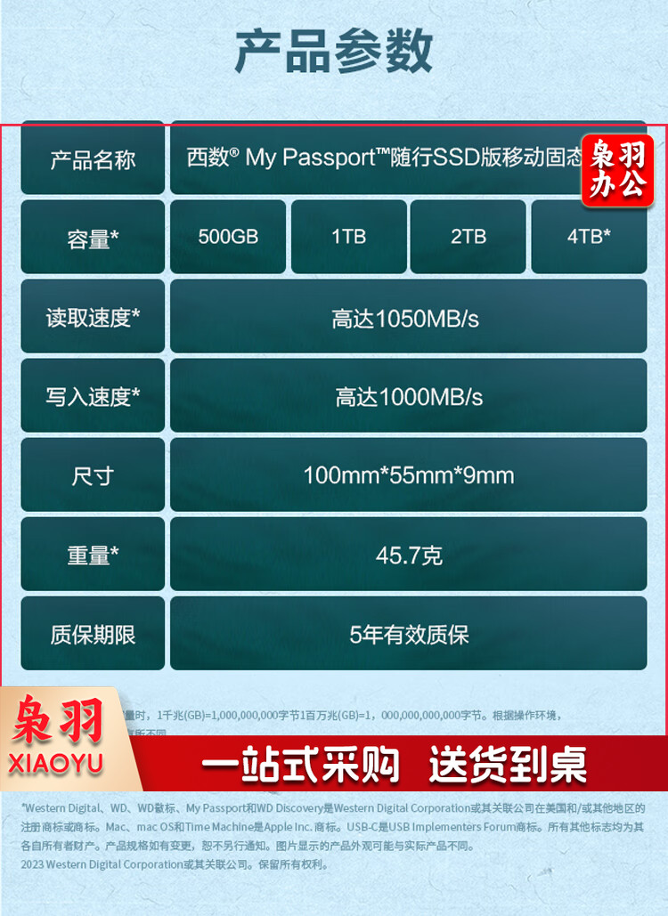 西部数据(WD)2TB NVMe 移动固态硬盘(PSSD)My Passport随行SSD type-c接口 1050MB/s