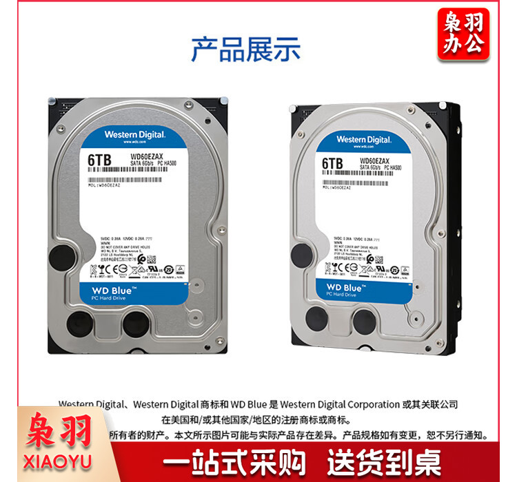 西部数据 机械移动硬盘 WD Blue 西数蓝盘 6TB CMR垂直 5400转 256MB SATA CMR (WD60EZAX)
