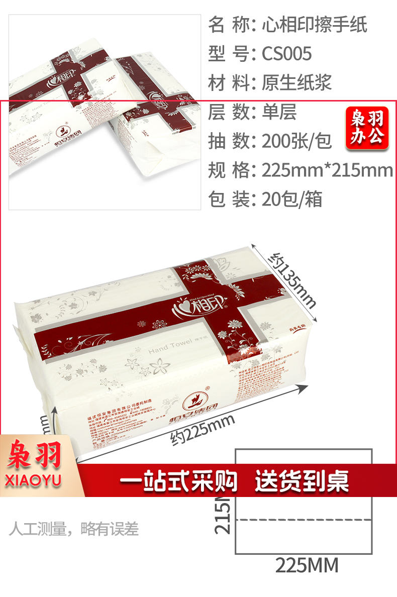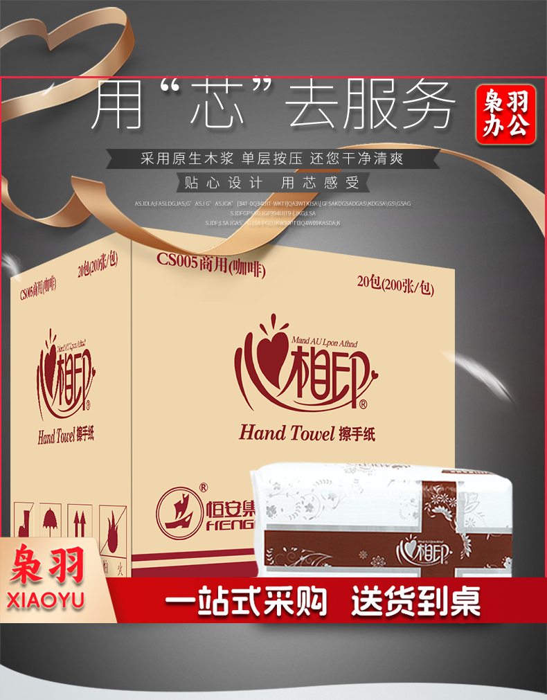 心相印擦手纸抽取式纸巾200抽酒店商用抹手纸干手纸抹手纸CS005